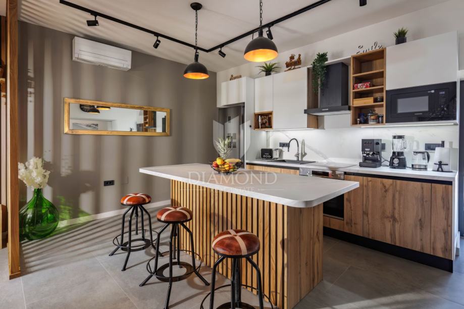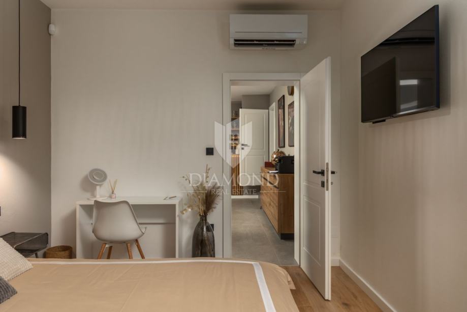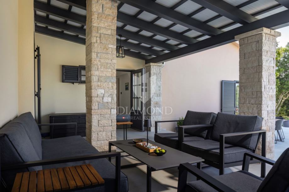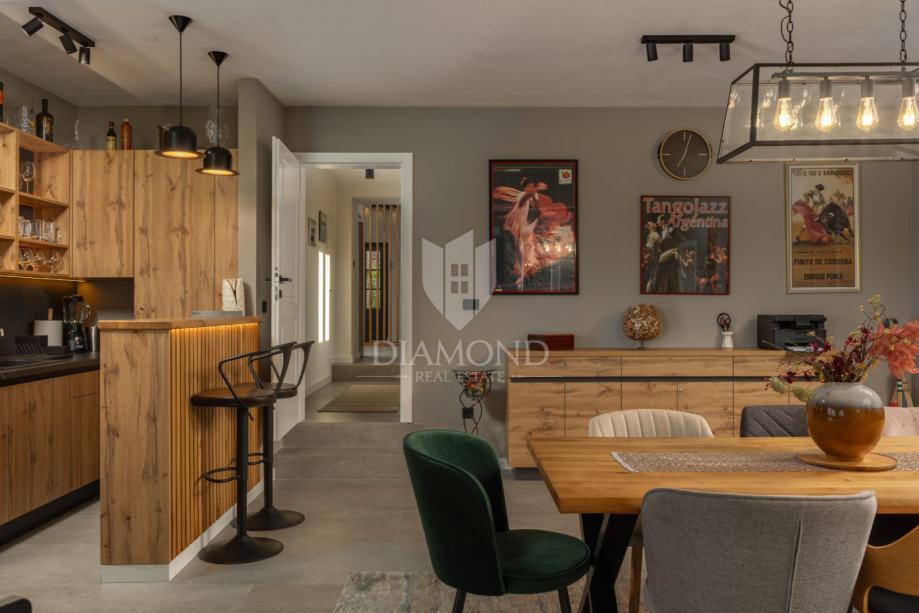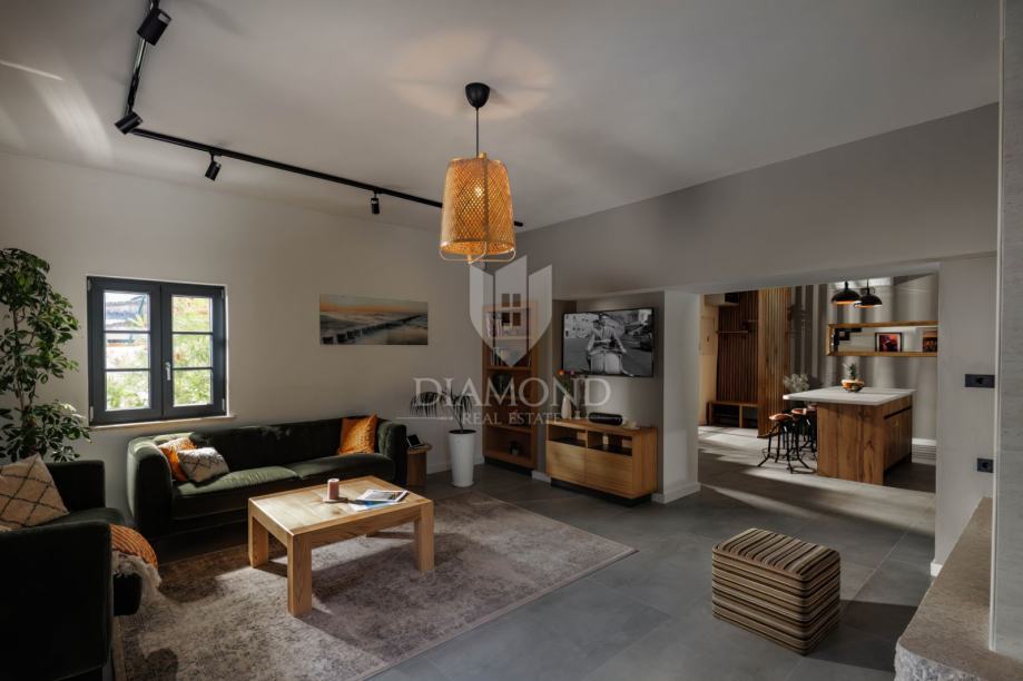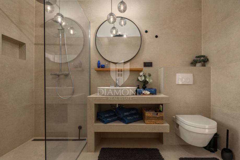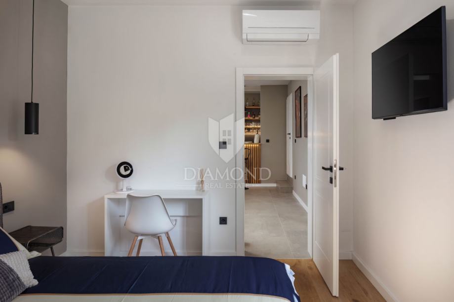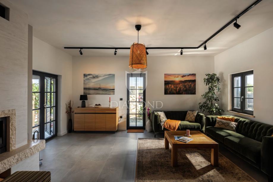 Unutrašnjost vile uređena je s najfinijim Natuzzi namještajem, pružajući vrhunsku udobnost i luksuz. Svaka prostorija je pažljivo dizajnirana kako bi stvorila harmoničan i elegantan te funkcionalan ambijent.