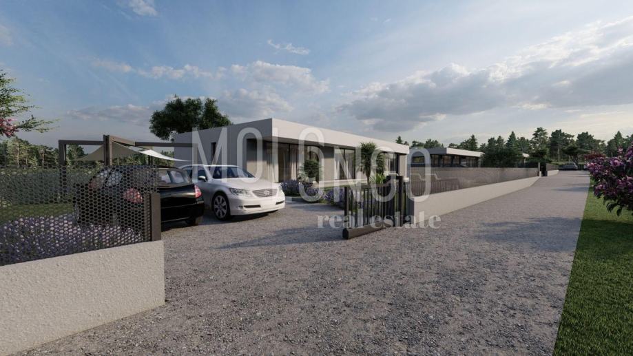 Prva jedinica se sastoji od 3 spavaće sobe i dnevnog boravka te kuhinje s blagovaonom otvorenog prostora, a druga jedinica je istog koncepta samo s 2 spavaće sobe . Izlaz iz oba stana je na sunčalište s bazenom veličine 8x4. Kuća je modernog dizajna s ravnim krovom. Grijanje je podno putem dizalice topline i klima uređaj za dodatno rashlađivanje ili zagrijavanje zraka. Sveukupno, ova kuća je izgrađena na odličnoj lokaciji koja je blizu svih važnih sadržaja, ali istovremeno je uvučena od glavne ceste i nepoželjnih pogleda te pruža pogled prema zelenoj površini.