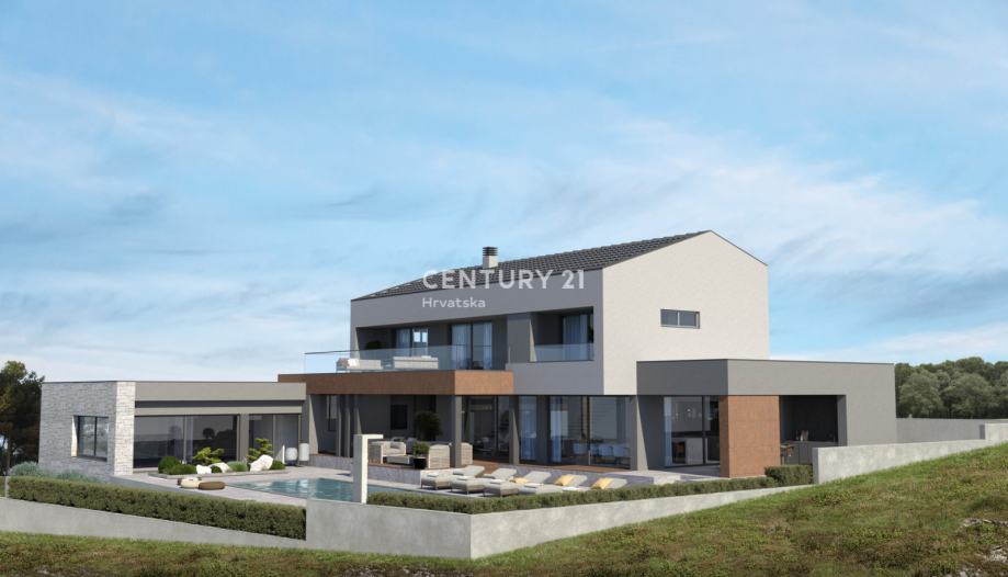 Na mirnoj lokaciji, svega nekoliko km od Labina, u malome selu, prodaje se građevinsko zemljište s projektom i građevinskom dozvolom za modernu kuću površine 350 m2 s tri spavaće sobe projektirana za kategorizaciju od 5 zvjezdica.