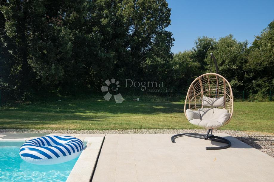 Na lijepo uređenoj okućnici smjestio se bazen od 45 m2 .
