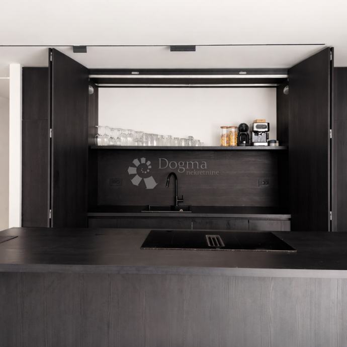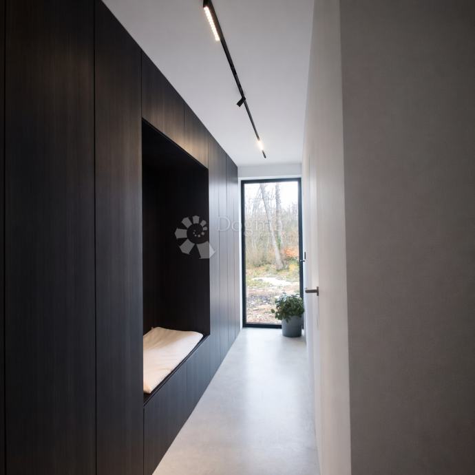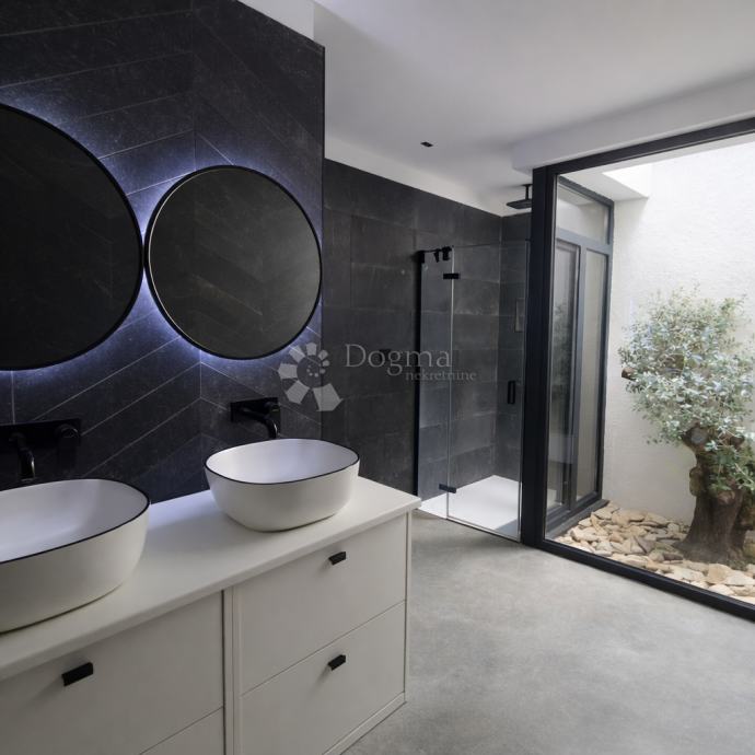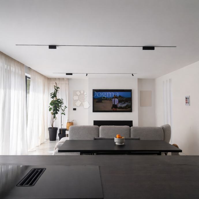 Nekretnina je opremljena namještajem po mjeri, uz podno grijanje putem dizalice topline, dvostruku toplinsku izolaciju i dvije klima jedinice.
