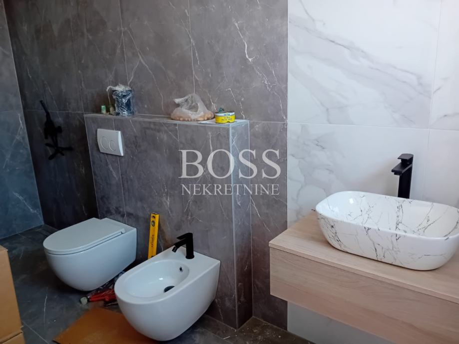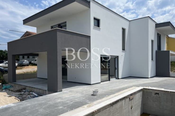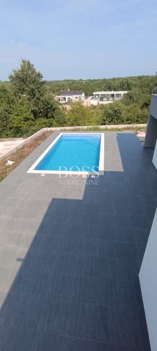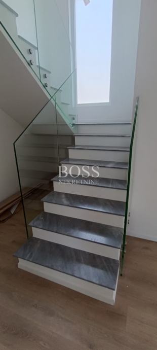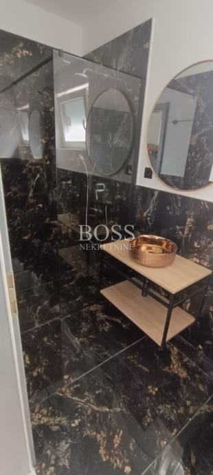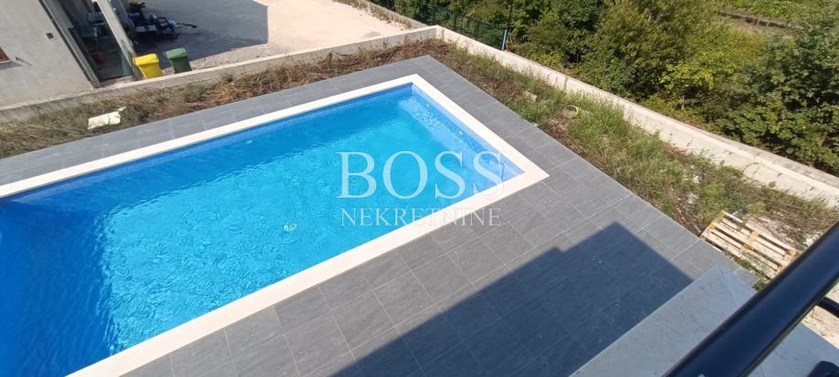 U ponudi imamo modernu vilu u malom mjestu nedaleko Labina, samo 4km udaljena od centra grada, te 8km od turističkog mjesta Rabac. Na potpuno ograđenoj parceli od 814m2 izgrađena vila ima neto površinu 220m2. Sastoji od prizemlja u kojem je smještena prostrana kuhinja s blagovaonom i dnevnim boravkom, kupaona i ostava. Velika staklena stijena dnevnog boravka otvara nam pogled na natkrivenu terasu s velikim stolom za blagovanje. Na prvom katu se nalaze tri spavaće sobe s vlastitim kupaonicama. Svaka soba ima izlaz na svoju terasu. Na lijepo uređenoj okućnici nalazi se bazen površine 40m2, a u nastavku je mjesto za opuštanje i druženje. Vila se prodaje bez namještaja. Pri gradnji se koriste kvalitetni i moderni materijali kako bi se uklopili u prirodu koja ih okružuje. Sve prostorije su opremljene klima uređajima, te je postavljena ALU stolarija. Svaka soba ima svoj toalet s kupaonicom, također toalet se nalazi u prizemlju kuće. Boss, kontakt: 091/782-2323 Tihomir