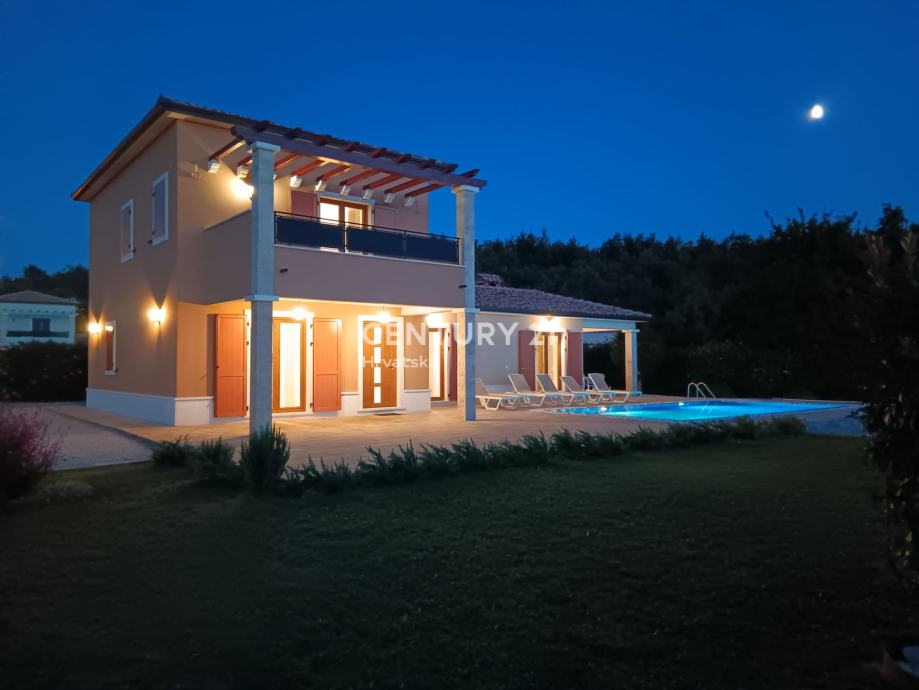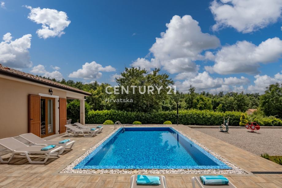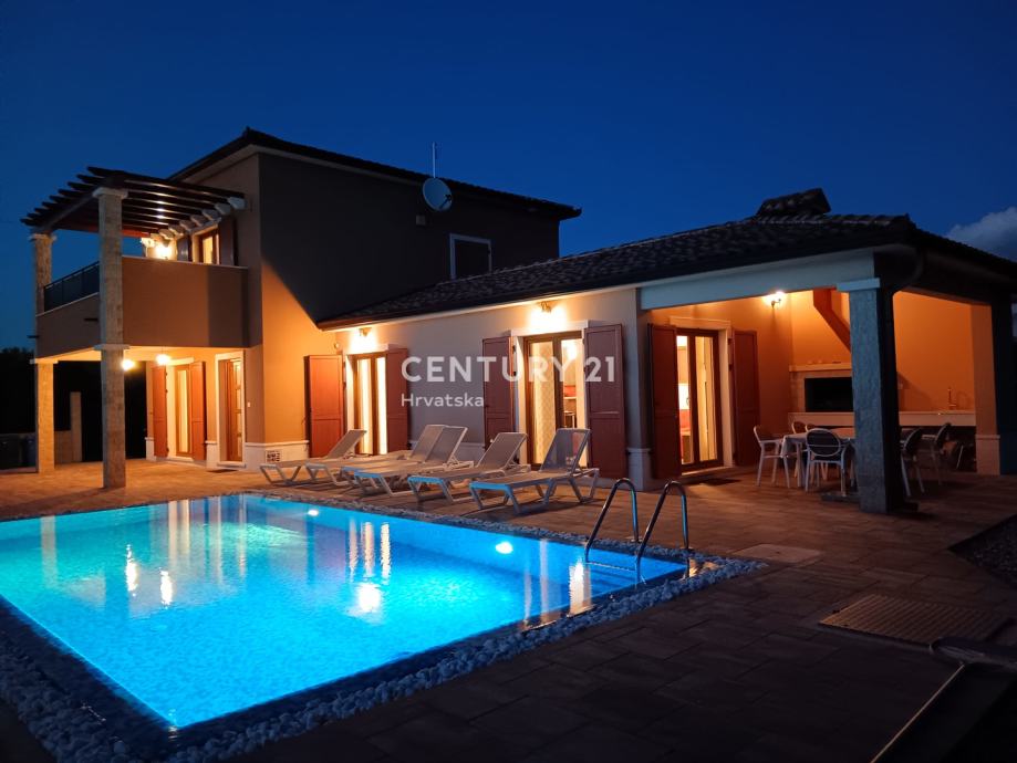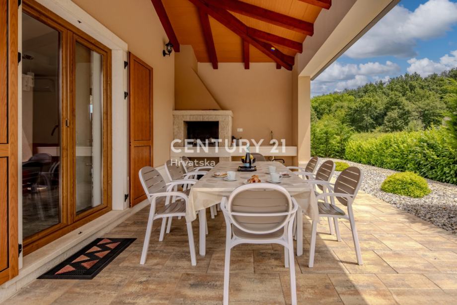 Ispred kuće proteže se vanjski bazen, do bazena je dječje igralište i terasa sa ljetnom kuhinjom gdje je izveden kamin za rošiljanje i stol za uživanje na otvorenom.