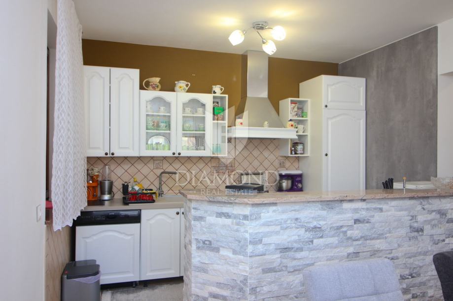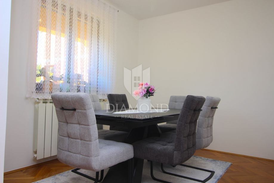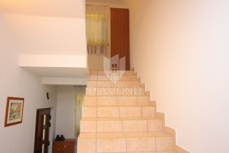 U Labinu, gradiću smještenom na istočnoj obali Istre, na brdašcu visokom 320 metara udaljenom svega tri kilometara od mora, smjestila se ova lijepa kuća sa četiri stana. U prizemlju se nalazi konoba sa kaminom i kuhinjom, te dva stana koji su u roh-bau izvedbi. Na prvoj etaži se nalazi potpuno opremljen i namješten trosobni stan od 155 četvornih metara, sa prekrasnom kuhinjom, blagovaonom i dvije kupaone. Iz dnevnog boravka izlazi se na veliku natkrivenu terasu. Stan je klimatiziran i postavljeno je centralno grijanje na drva. Na drugom katu nalazi se još jedan takav stan, koji je također roh-bau i potrebno ga je srediti. Na okućnici veličine 688 četvornih metara, koja je besprijekorno uređena i održavana nalazi se i veliki parking.