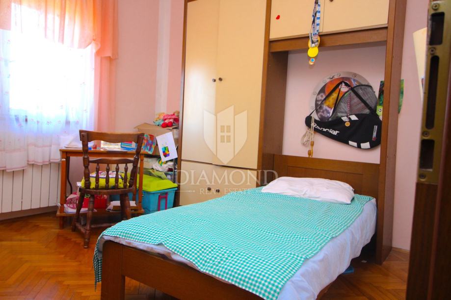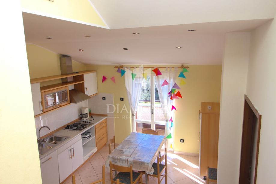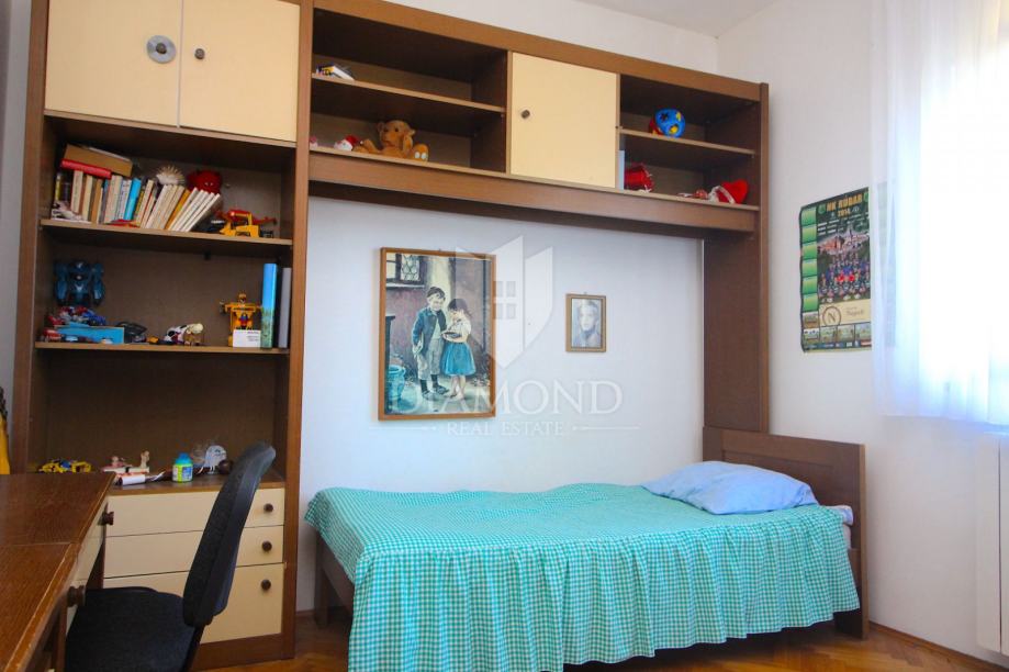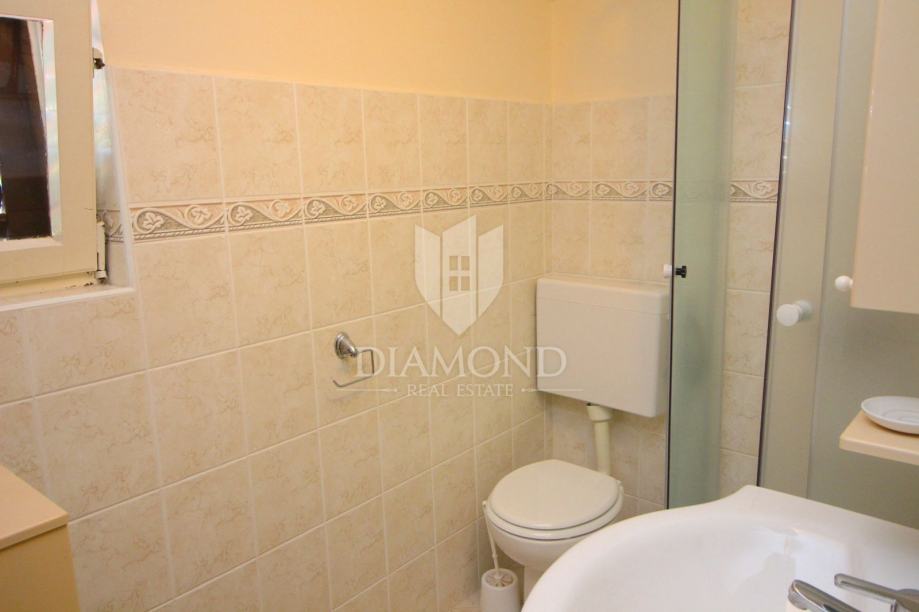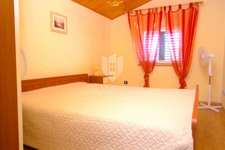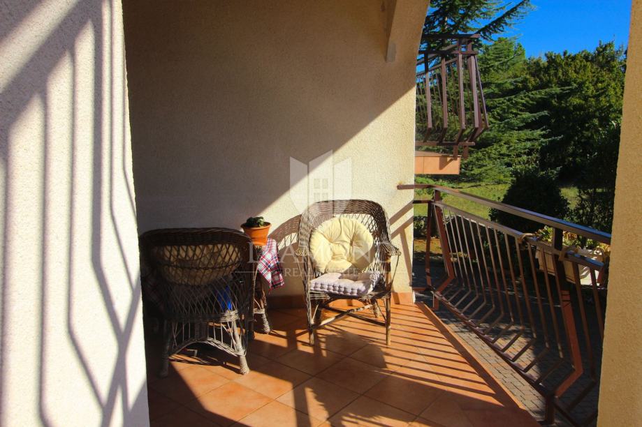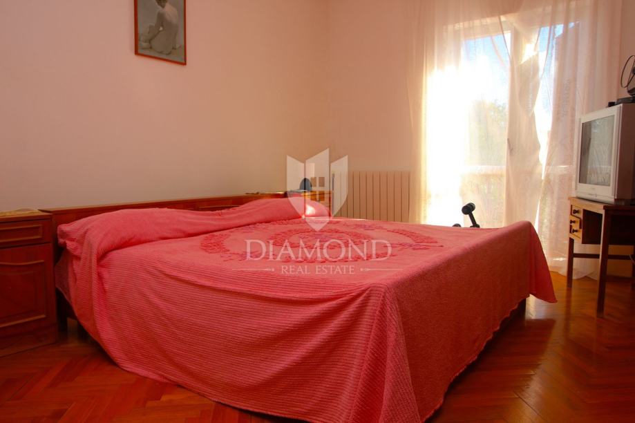 Nedaleko centra grada nalazi se ova lijepa obiteljska kuća. Proteže se kroz suteren, prizemlje i kat. U suterenu se nalazi konoba, kuhinja i velika garaža. Prizemlje čini veći stan sa kuhinjom, blagovaonom, dnevnim boravkom i kupaonom, te nas par stepenica dijeli od prostora gdje su smještene tri spavaće sobe i kupaona. Na katu se nalazi