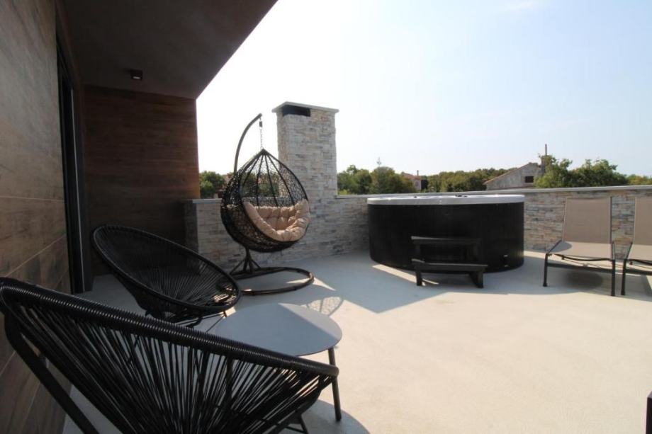 Stepenice vode na kat gdje se nalaze tri spavaće sobe svaka sa svojom kupaonicom te velika terasa s pogledom na more.