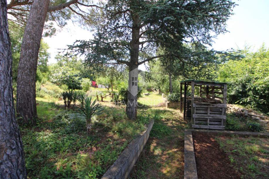 Prostrana okućnica veličine 1163 m2 osigurava dovoljno privatnosti. Nalazi se u potpunosti unutar građevinske zone stoga postoji mogućnost izgradnje dodatnog objekta ili bazena čemu pogoduje južna orijentacija terena. Kuću okružuje šuma i zelenilo, idealno za ljubitelje mira i prirode a opet dovoljno blizu mora. Prva plaža nalazi se na svega 1.3 km kao i nekoliko restorana te dućan.