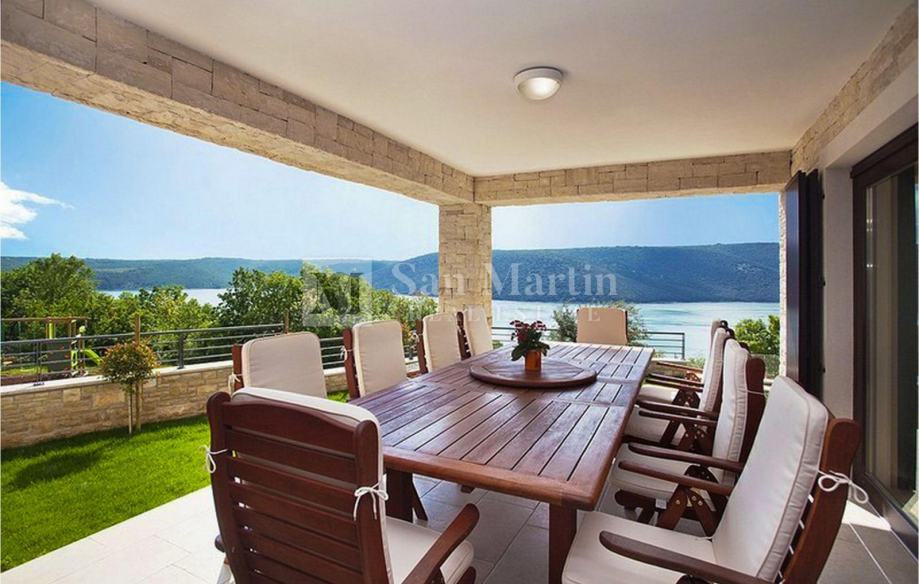 Dnevni prostor kuće ima izlaz na natkrivenu terasu koja vodi do infinity bazena sa zonom za sunčanje.