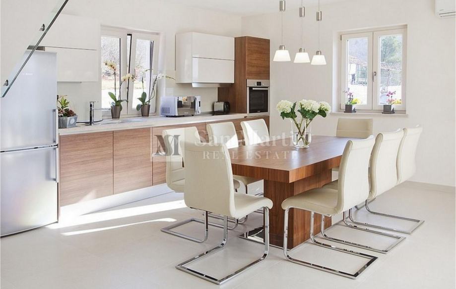 U podrumu se nalazi konoba sa kaminom. U prizemlju su se smjestili dnevni boravak, kuhinja i blagovaona otvorenog koncepta te kupaona. Na katu se nalaze tri prostrane spavaće sobe od kojih svaka ima vlastitu kupaonu. Dvije spavaće sobe imaju izlaz na balkon.