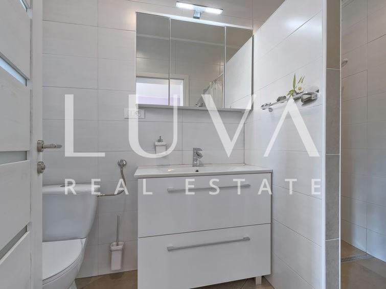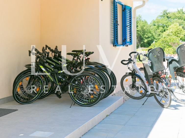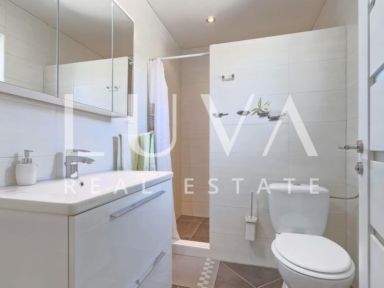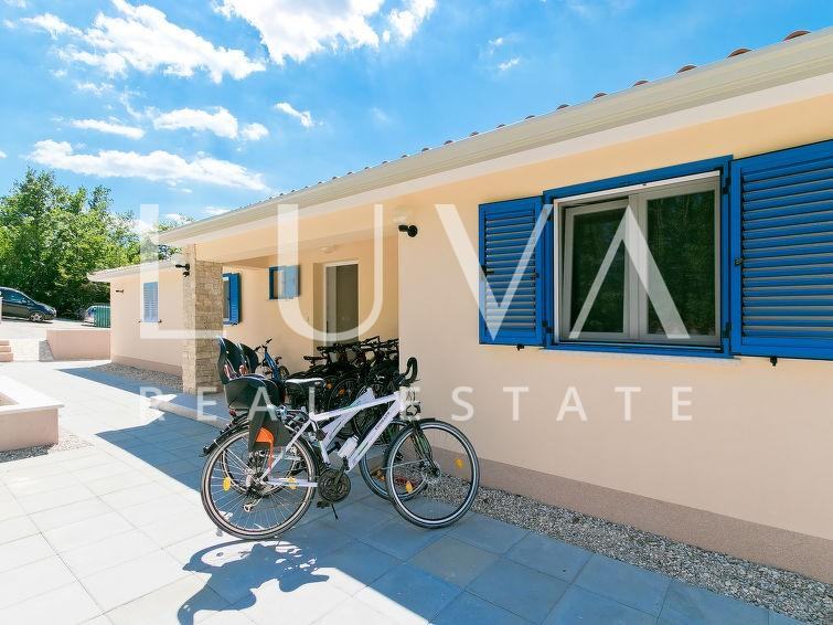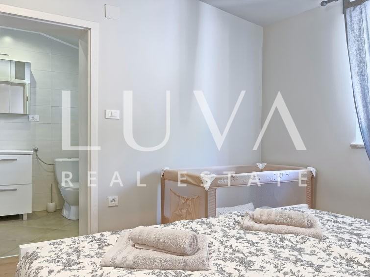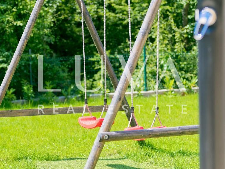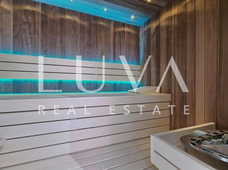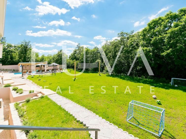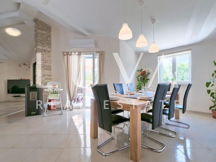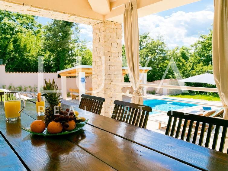Prodaje se luksuzna kuća s bazenom u malom mjestu nedaleko od Labina. Kuća je površine 215 m2 na posjedu od 1470 m2. Prizemlje kuće sastoji se od prostranog ulaznog hodnika koji vodi do otvorenog dnevnog boravka i blagovaonice. Dnevni boravak je prozračan i osvijetljen, s velikim prozorima koji pružaju prekrasan pogled na vrt. Osim toga kuća ima 4 spavaće sobe s vlastitim kupaonicama i gostinjski WC. U suterenu kuće se nalazi prostorija sa saunom i spravama za vježbanje. Kuća je smještena na prilično velikom posjedu koji je lijepo uređen s mnogo zelenila, a osim vanjskog bazena kuća pruža i dječje igralište i lijepo uređenu vanjsku natkrivenu terasu s roštiljem.