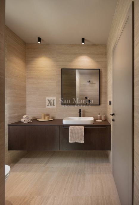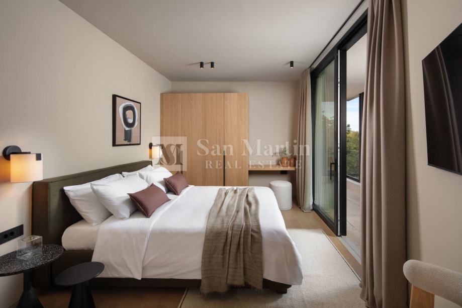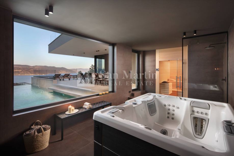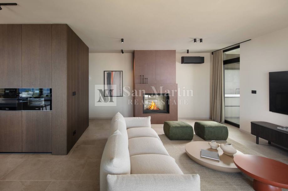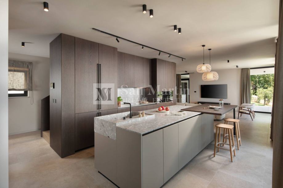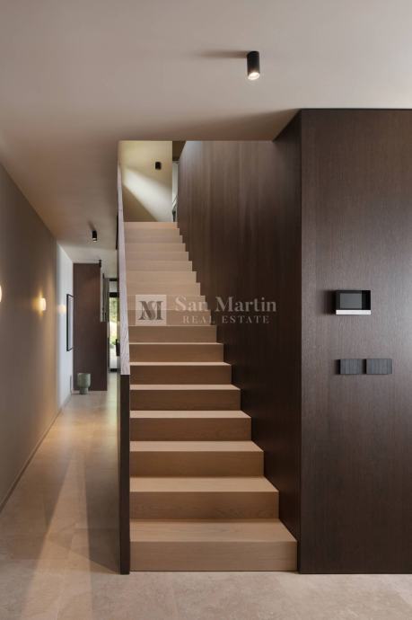 Ova luksuzna ljepotica se prostire na dvije etaže. U prizemlju su se smjestili ulazni hodnik, dnevni boravak, kuhinja i blagovaona otvorenog koncepta, toalet te wellness soba.