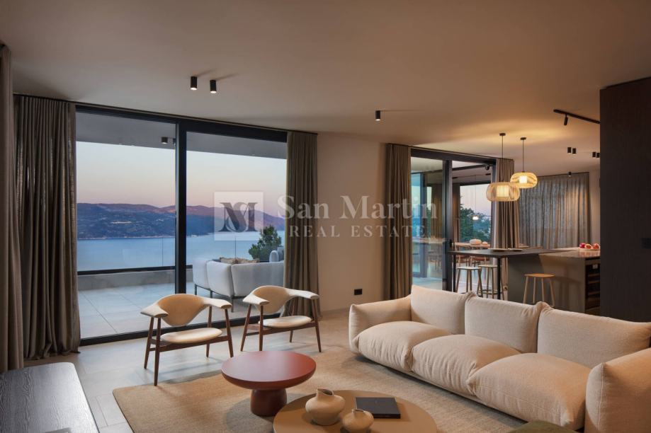 Dnevni prostor kuće ima izlaz na natkrivenu terasu koja također pruža predivan pogled na more i otok Cres.