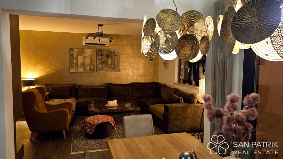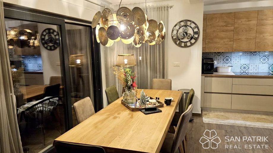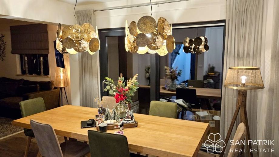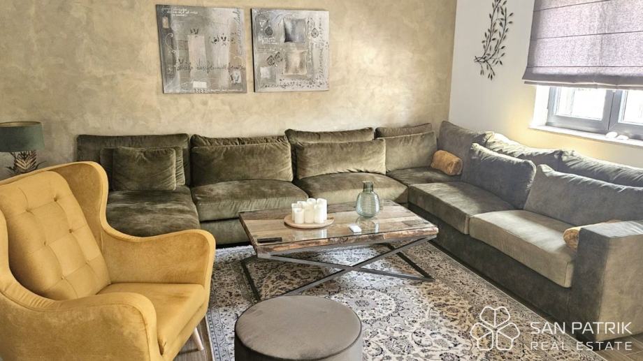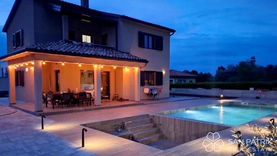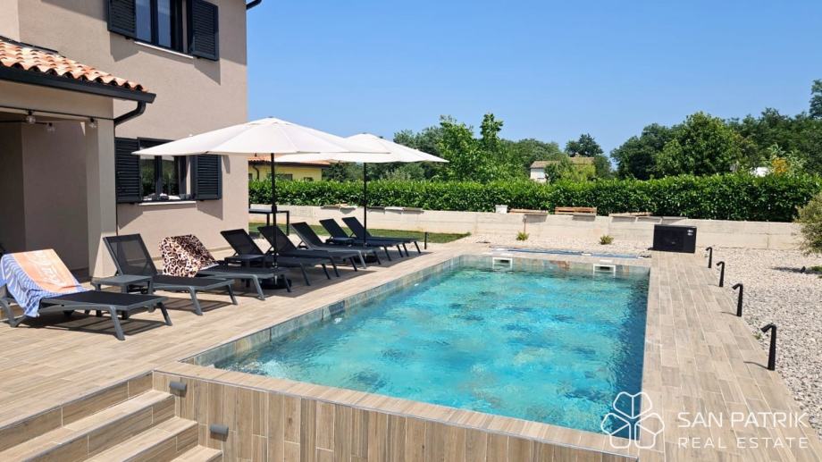 Vila Labin - prizemlje + kat - stambena površina 131,50 m2 (4 spavaće sobe + 3 kupaonice + 1WC + radna soba) + terasa + bazen sa sunčalištem + vrt + vanjska parking mjesta, na parceli površine 1207 m2 = 700.000 EUR (s uključenim namještajem)