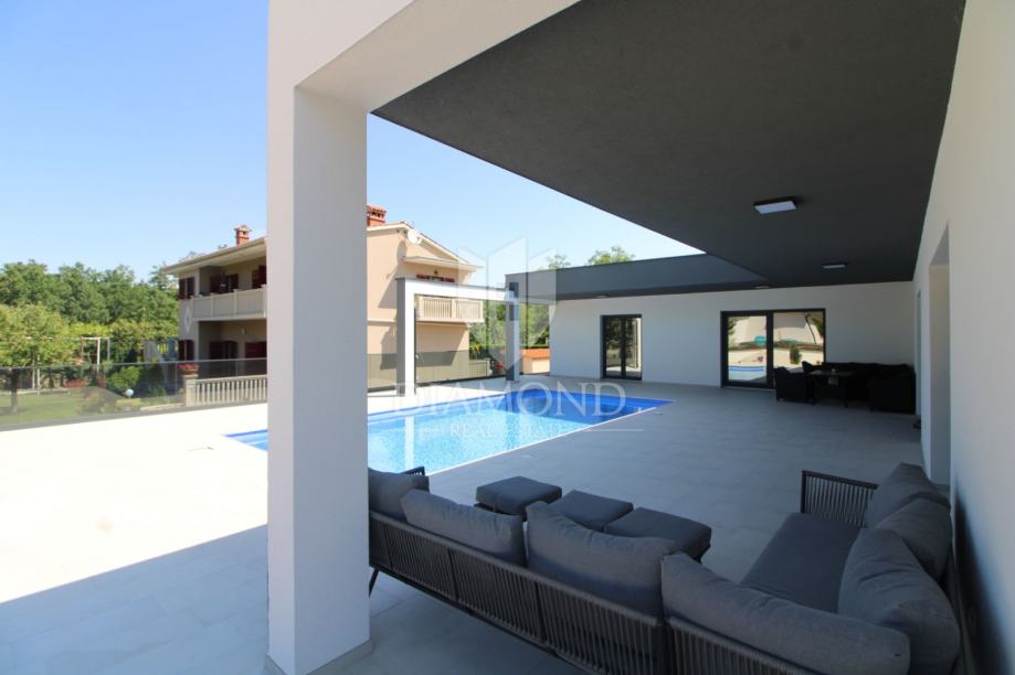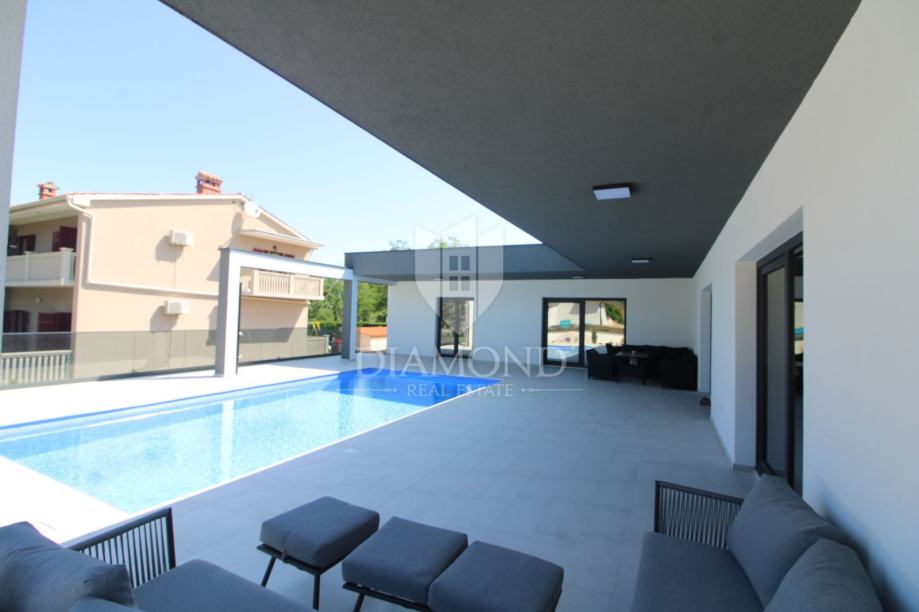Labin, okolica, novoizgrađena prizemnica s bazenom (prodaja)