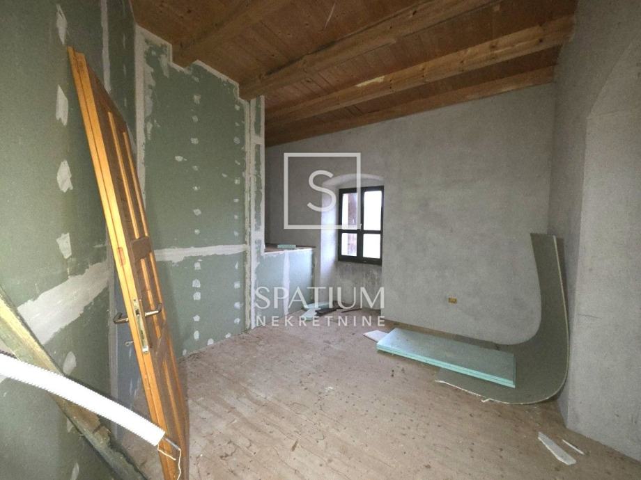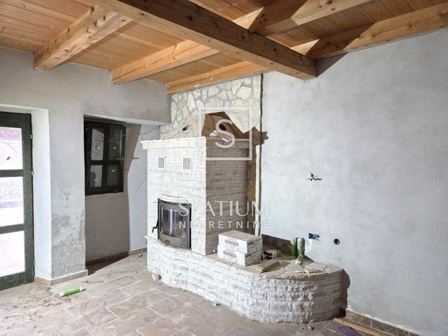 LABIN, OKOLICA, u ponudi je obiteljska kamena kuća ukupne stambene površine 145 m², smještena u mirnom i zelenilom okruženom dijelu okolice Labina. Nekretnina je kompletno renovirana 2013. godine te posjeduje urednu dokumentaciju, uključujući rješenje o izvedenom stanju i uredan vlasnički list. Prizemlje obuhvaća dnevni boravak, kuhinju s blagovaonicom i kupaonicu, dok se na katu nalaze dvije spavaće sobe i dodatna kupaonica. Kuća je položena na blagoj uzvisini, što omogućuje pogled na more u daljini, a interijer čeka finalno uređenje prema željama budućeg vlasnika.