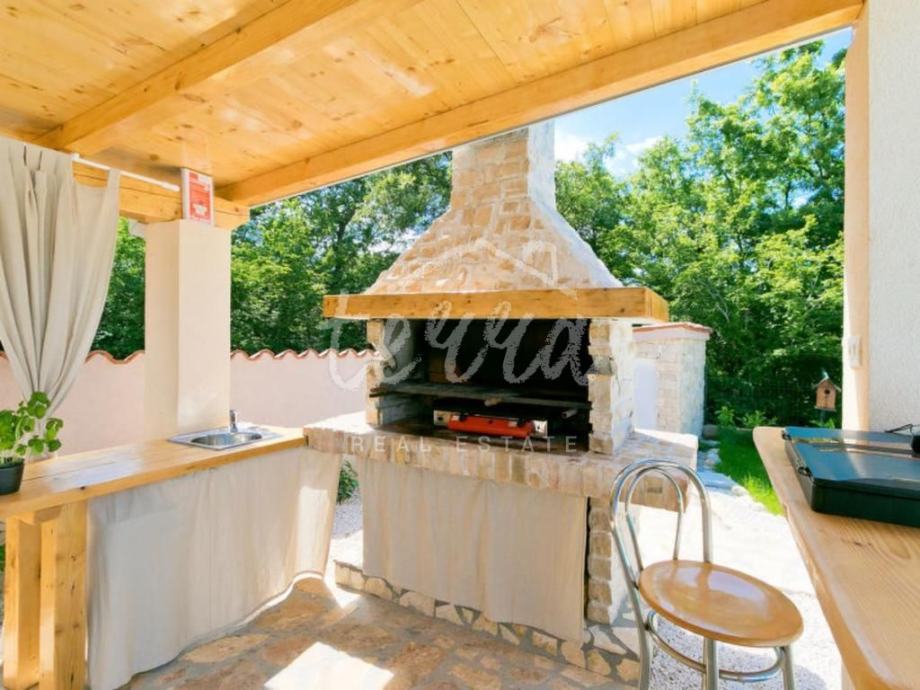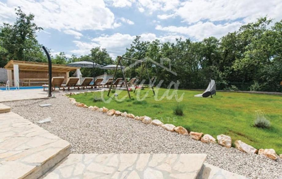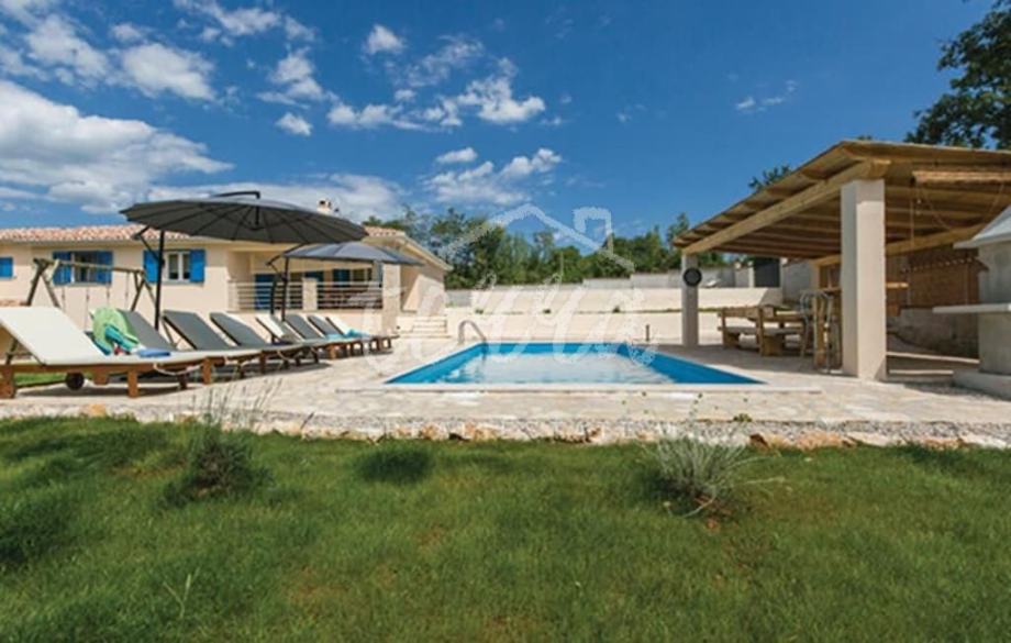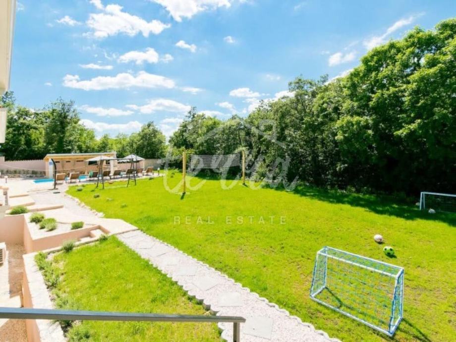 Na velikoj okućnici koja je besprijekorno uređena, nalazi se bazen sa sunčalištem, sjenica sa potpuno uređenom kuhinjom i roštiljem, te stolni tenis, badminton i teren za odbojku.