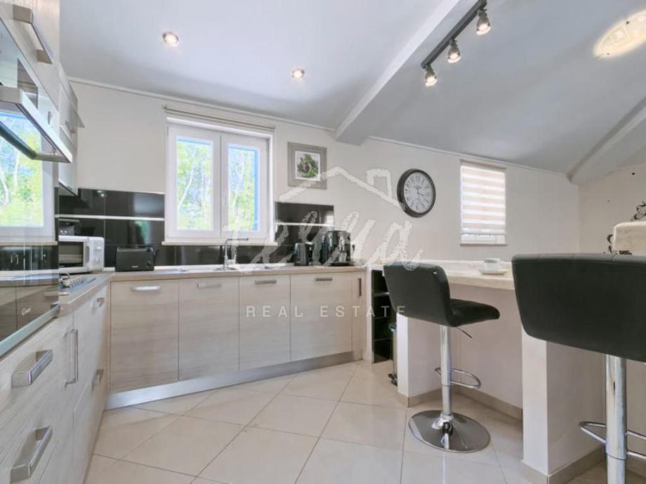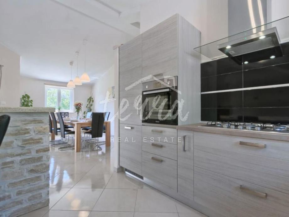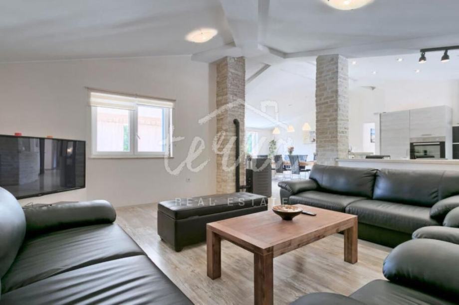 Villa ukupne površine od 215 četvornih metara, proteže se kroz prizemlje i suteren.