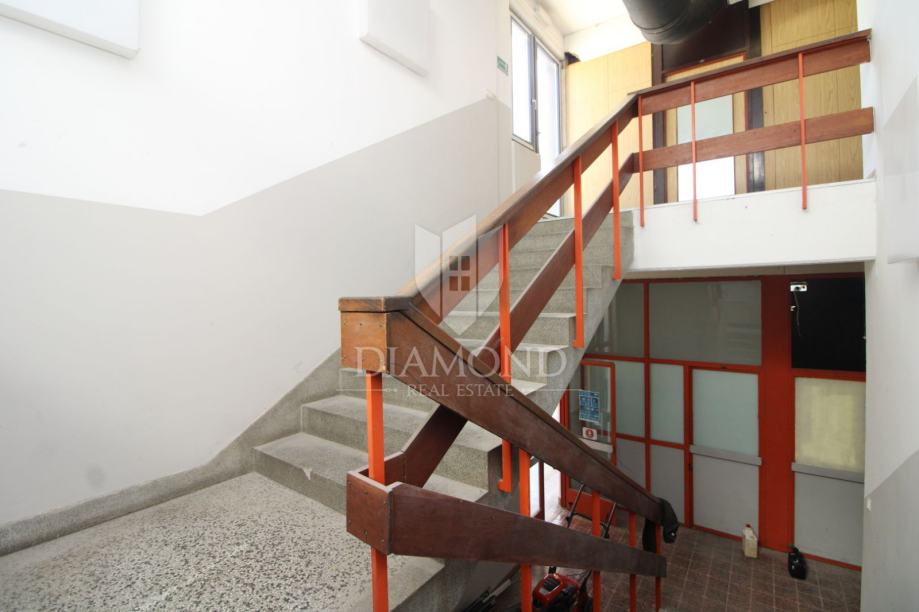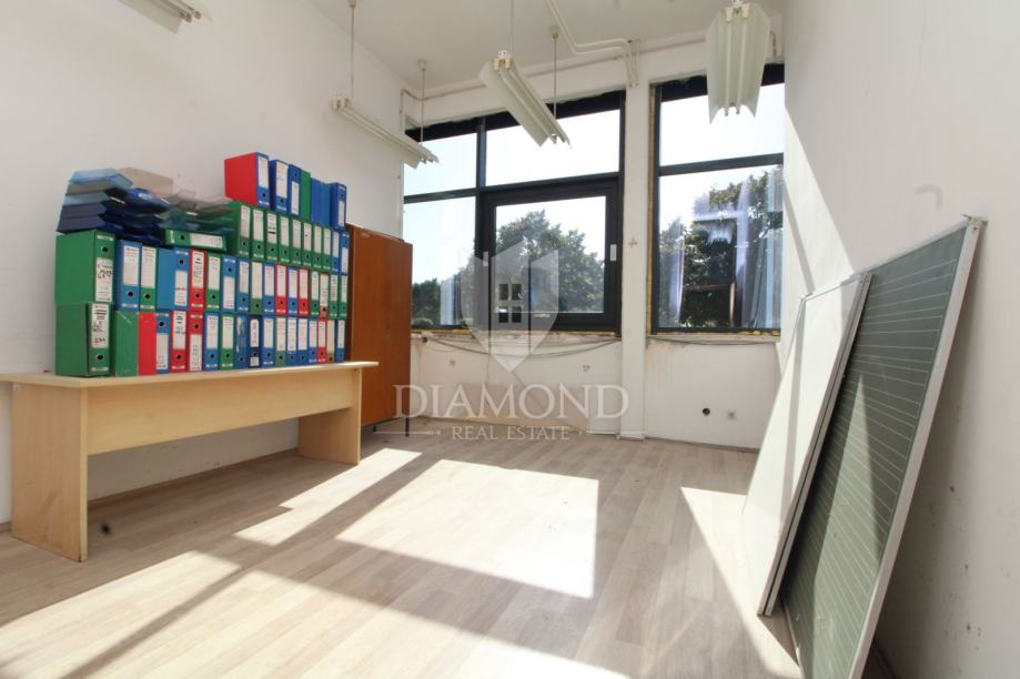 Poslovni prostor veličine 755 m2 prostire se na dvije etaže. Prizemlje se sastoji od 9 zasebnih prostorija, dva sanitarna čvora i hodnika ukupne površine 215 m2 dok se na katu nalazi 19 zasebnih prostorija, hodnik i dva sanitarna čvora ukupne površine 540 m2. Prostori su trenutno pregrađeni no moguće ih je preurediti i prilagoditi ovisno o djelatnosti koja bi se u poslovnom prostoru obavljala. Grijanje je putem klima uređaja te je osiguran zaseban ulaz na svaku etažu. Poslovni prostor je idealan za uredske djelatnosti ali i za obavljanje raznih uslužnih djelatnosti.
