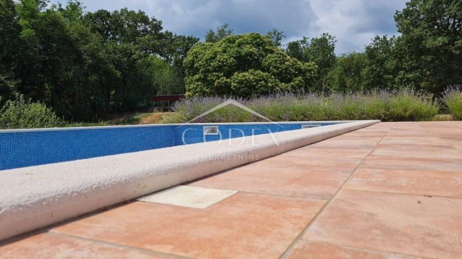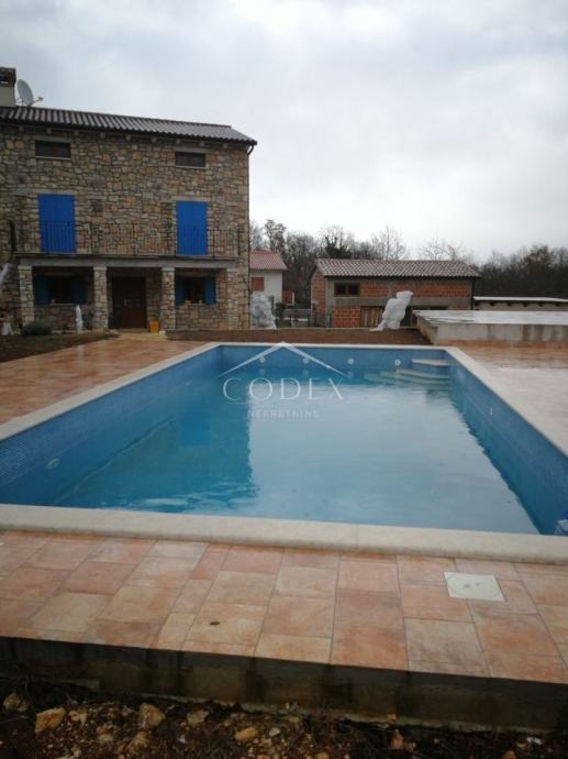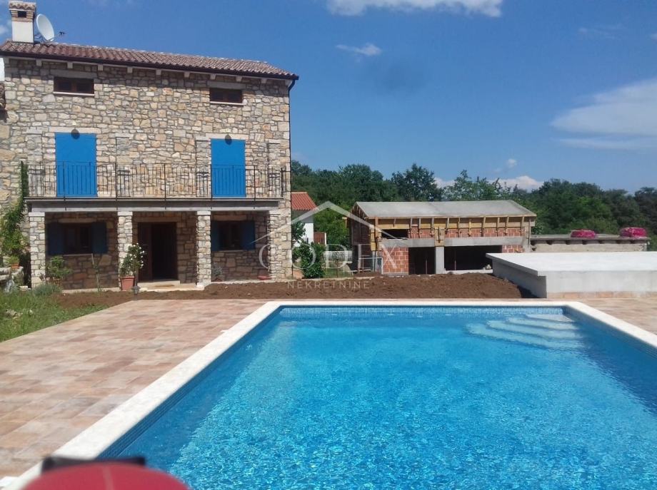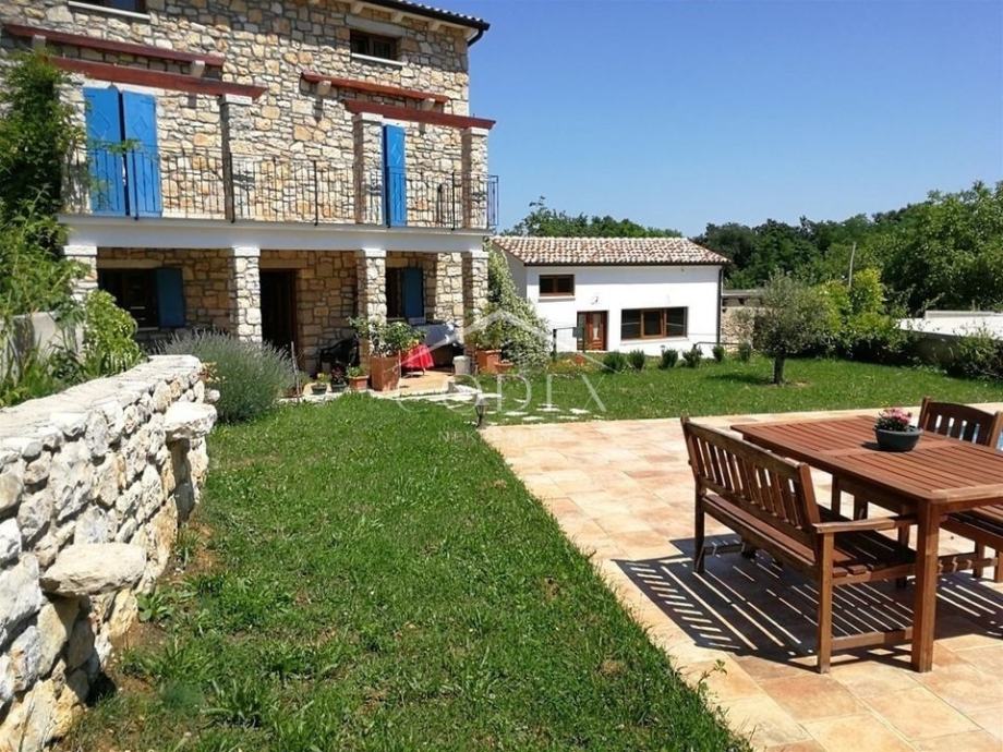 Na mirnoj lokaciji u srcu Istre, prodaje se prekrasna istarska kućica, uređena sa unikatnim namještajem i bazenom, te dodatnim objektom koji služi kao apartmanska jedinica.