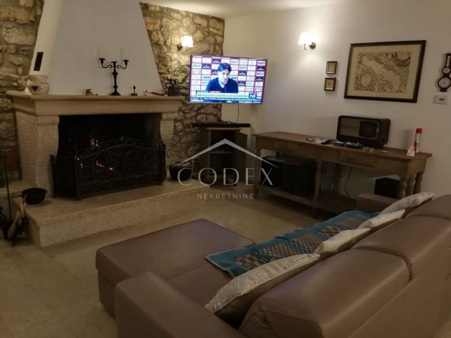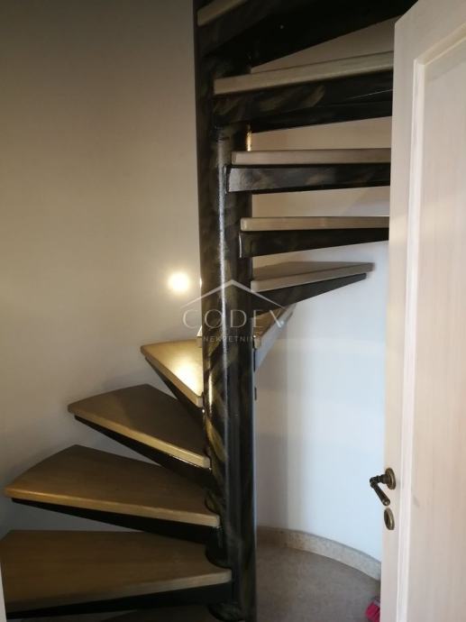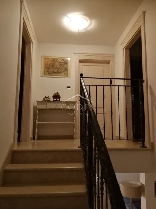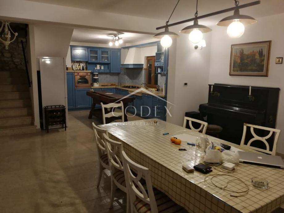 Na prizemlju se smjestio komforan dnevni boravak u open-space konceptu sa blagovaonicom i kuhinjom, vinoteka, ostava, te stepenice koje vode na gornju etažu koja nudi 2 spavaće sobe s vlastitim kupaonicama i jacuzzijem, dok u potkrovlju se nalazi još 65 m2 stambenog, neuređenog prostora koje može poslužiti kao odvojena stambena jedinica, ili komforni prostor za spavanje druženje. U potkrovlju se smjestila i terasa s koje se pruža prekrasan pogled na istarski krajolik i Učku.