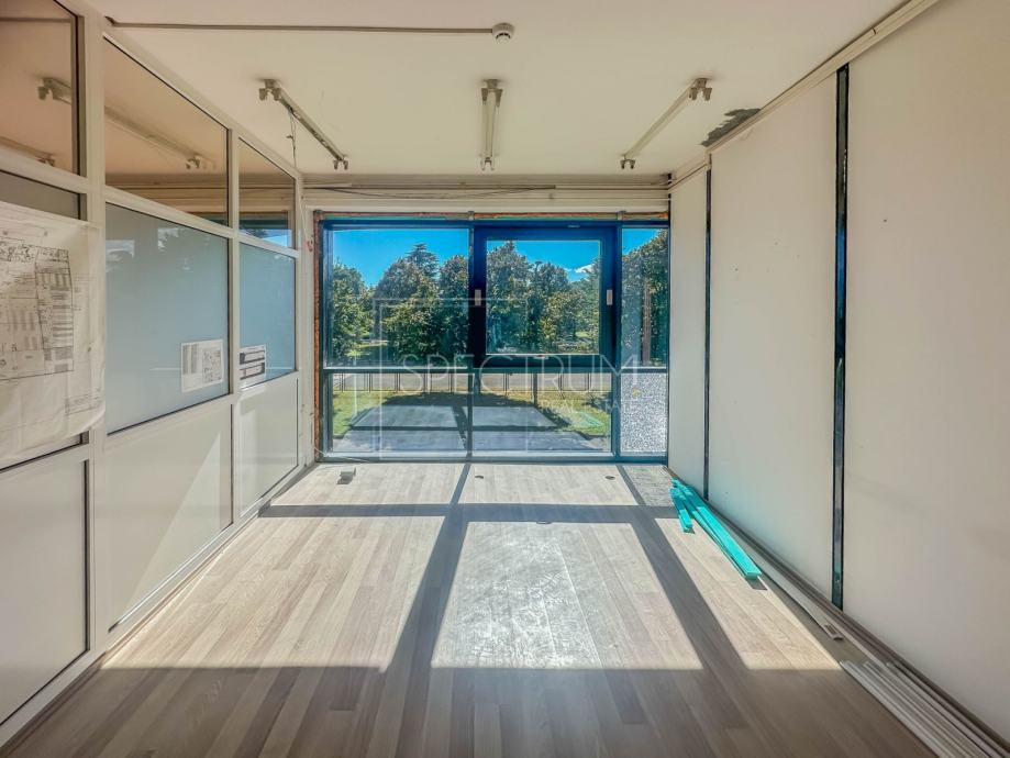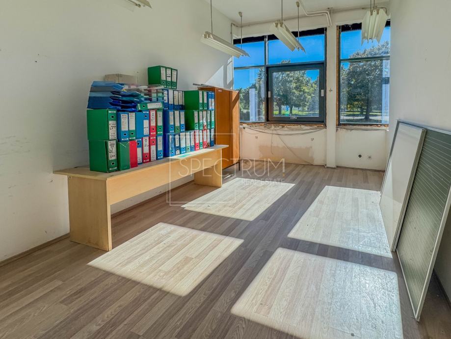 Poslovni prostor se proteže kroz dvije etaže, prizemlje i kat. Površina poslovnog prostora iznosi 755 m2. Ukupna površina poslovnog prostora u prizemlju iznosi 215 m2. U prizemlju se nalazi 9 zasebnih prostorija, 2 sanitarna čvora i prostrani hodnik. Ukupna površina poslovnog prostora na katu iznosi 540 m2. Na katu se nalazi 19 zasebnih prostorija, 2 sanitarna čvora i hodnik. Prostori su trenutno pregrađeni, no moguće ih je preurediti i prilagoditi ovisno o djelatnosti koja bi se u poslovnom prostoru obavljala. Grijanje je putem klima uređaja. Svaka etaža ima osiguran zaseban ulaz. Struja je trofazna a zakupljena snaga je 820 kWh, uz to zgrada ima i vlastitu fotonaponsku elektranu.