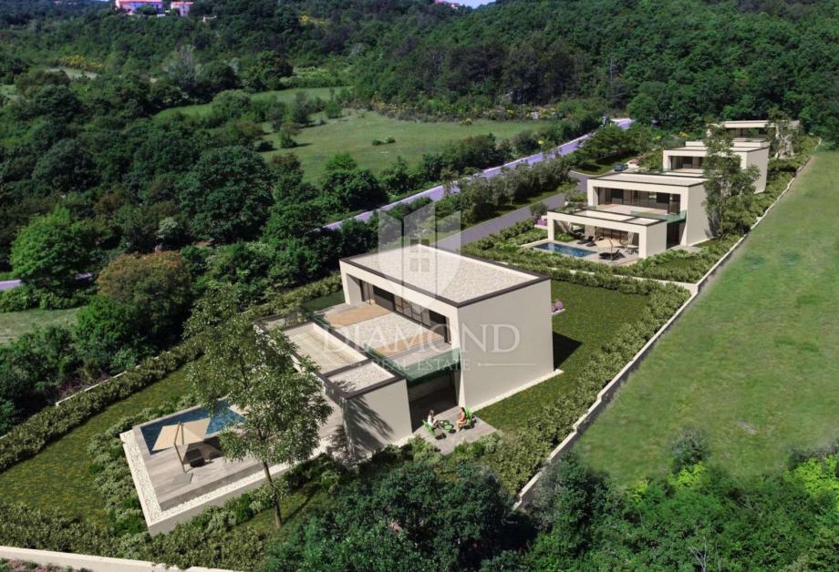 Prodajemo luksuznu modernu Villu sa bazenom na Istočnoj obali Istre. Villa se smjestila nadomak grada Labina i turističkog resorta Rapca, od centra grada udaljena je samo 5 kilometara iako se nalazi u potpuno mirnom i prirodnom okruženju. Villa ima ograđenu okućnicu od 1275 četvornih metara, površina Ville iznosi 303 četvorna metra sa 4 spavaće sobe, velikim dnevnim prostorima i terasama u prizemlju i na katu. U središnjem djelu dvorišta nalazi se veliki bazen sa uređenim sunčalištem i ljetna kuhinja. Sa lokacije se pruža prekrasan pogled na more i prirodu a prekrasne prirodne plaže su na svega 10 minuta vožnje. Villa je opremljena modernim sustavima grijanja i hlađenja u gradnji se koriste najkvalitetniji materijali na tržištu, dizajnirana je kako bi iskoristila puni potencijal lokacije na kojoj se nalazi.