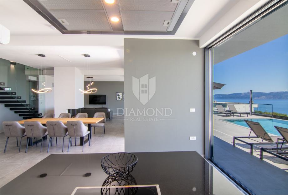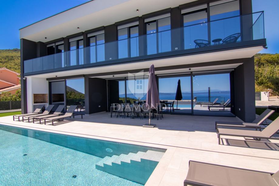 Predstavljamo vam luksuznu vilu smještenu na prestižnoj lokaciji u blizini Rapca i Labina, u srcu istarske obale, koja pruža savršen spoj modernog luksuza i prirodne ljepote. Ova jedinstvena nekretnina građena je u suvremenom arhitektonskom stilu, s naglaskom na prostranost, svjetlost i besprijekornu eleganciju. Panoramski pogled na more i cijeli Kvarner, koji se otvara iz gotovo svake prostorije, daje osjećaj ekskluzivnosti i mira, a ujedno stvara savršenu kulisu za uživanje u životu na Mediteranu.