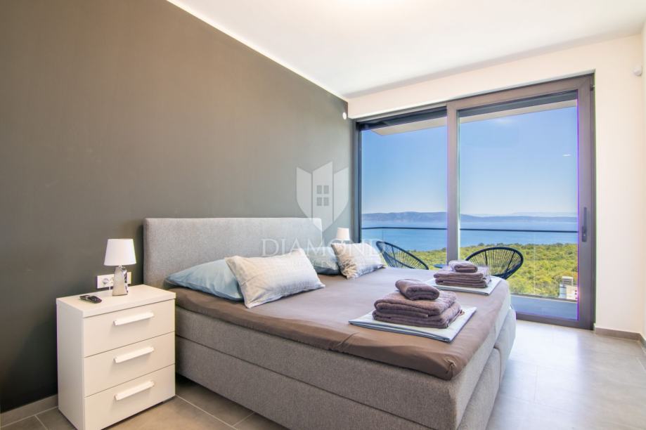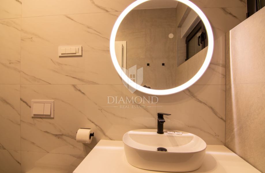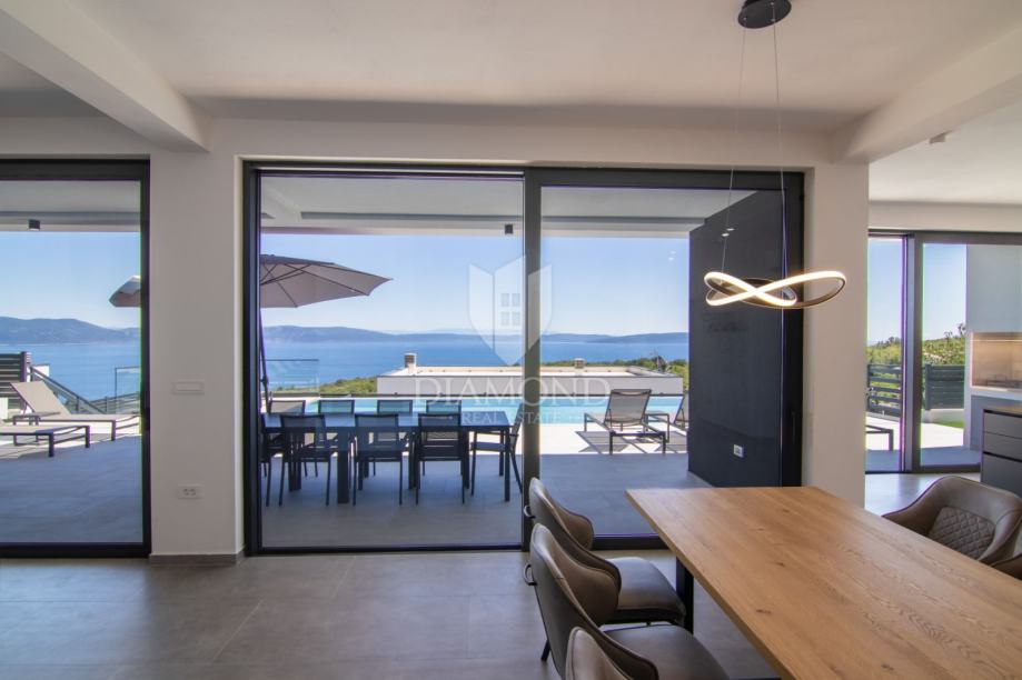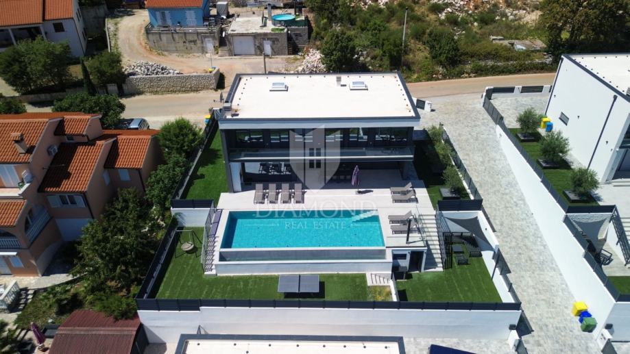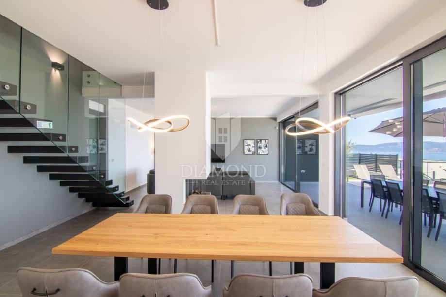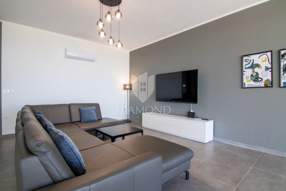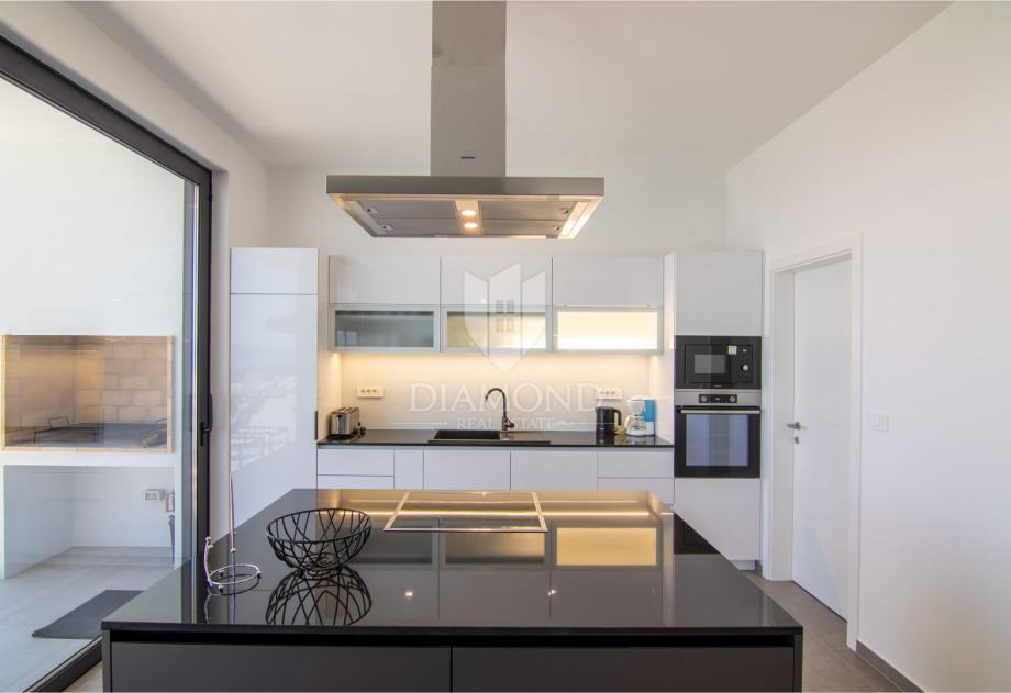 Vila je u potpunosti uređena i namještena pomno biranim dizajnerskim komadima koji naglašavaju moderan, ali topao karakter interijera. Prostrane staklene stijene povezuju unutarnji i vanjski prostor te omogućuju obilje prirodne svjetlosti, dok suvremeni detalji i visokokvalitetni materijali osiguravaju dugotrajnost i vrhunsku estetiku.