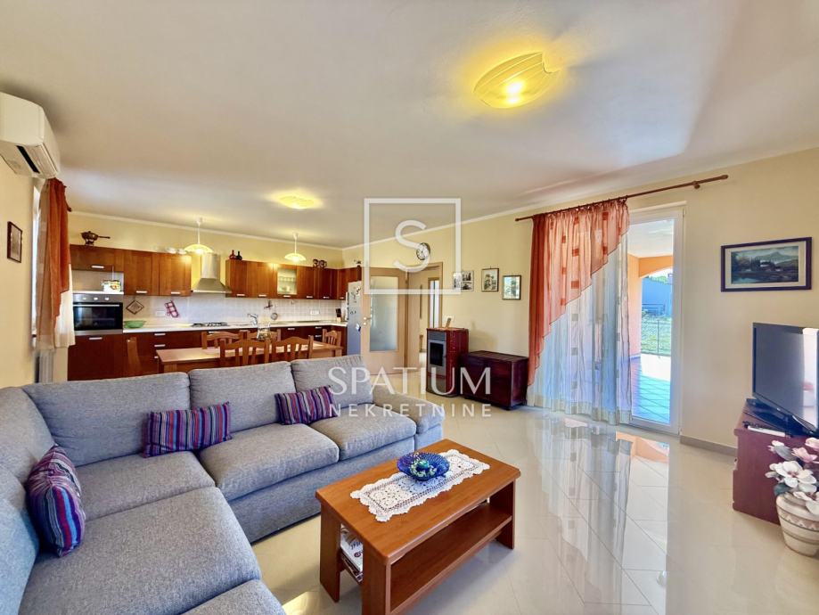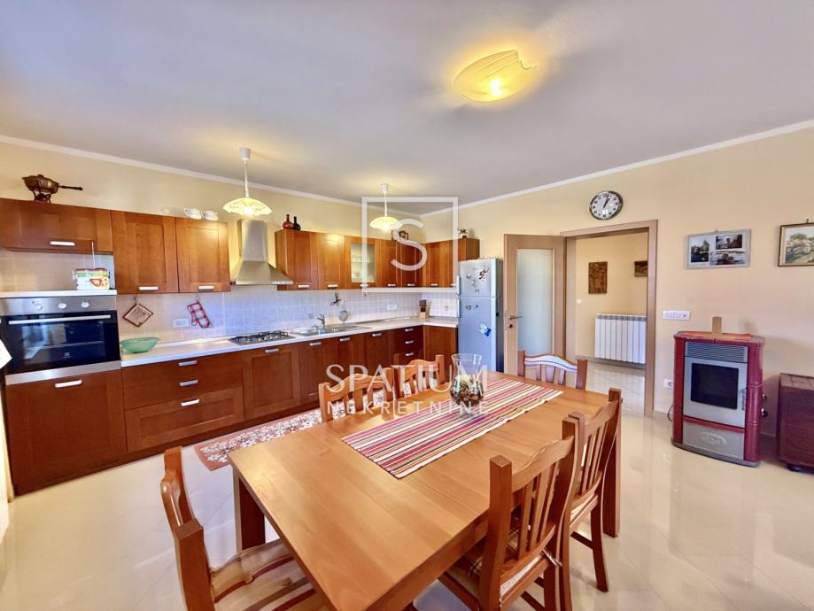 Kuća je opremljena centralnim grijanjem na pelete (radijatori) te s 2 inverter klima uređaja, što osigurava udobnost tijekom cijele godine. Prozori i škure izrađeni su od PVC stolarije, a u sobama je postavljen bambusov parket.
