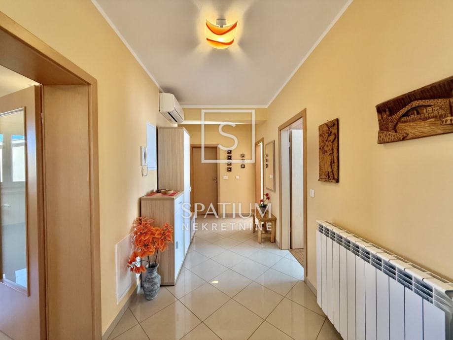 Nekretnina posjeduje više vanjskih parkirnih mjesta te garažu. Okućnica je uredno održavana, a lokacija omogućuje mirno stanovanje uz brzu povezanost – svega 5 minuta vožnje od centra grada.