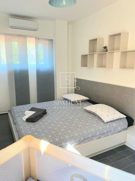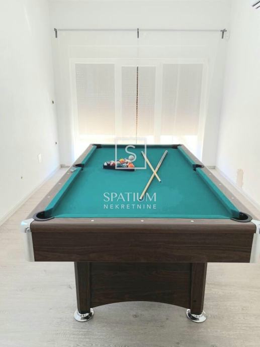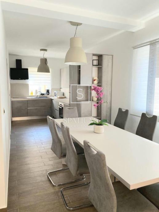 Kuća se prostire na prizemlje i kat te nudi funkcionalan raspored. U prizemlju se nalazi jedna spavaća soba, dnevni boravak sa kuhinjom i blagovaonicom, kupaona i prostorija za pranje rublja. Na drugom katu se nalazi jedna kupaona i tri spavaće sobe s time da jedna ima izlaz na terasu.