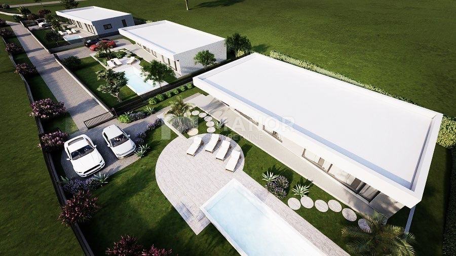 biti će smješten bazen dimenzija 8x4 m, sunčalište, terasa te više parkirnih mjesta. Grijanje na