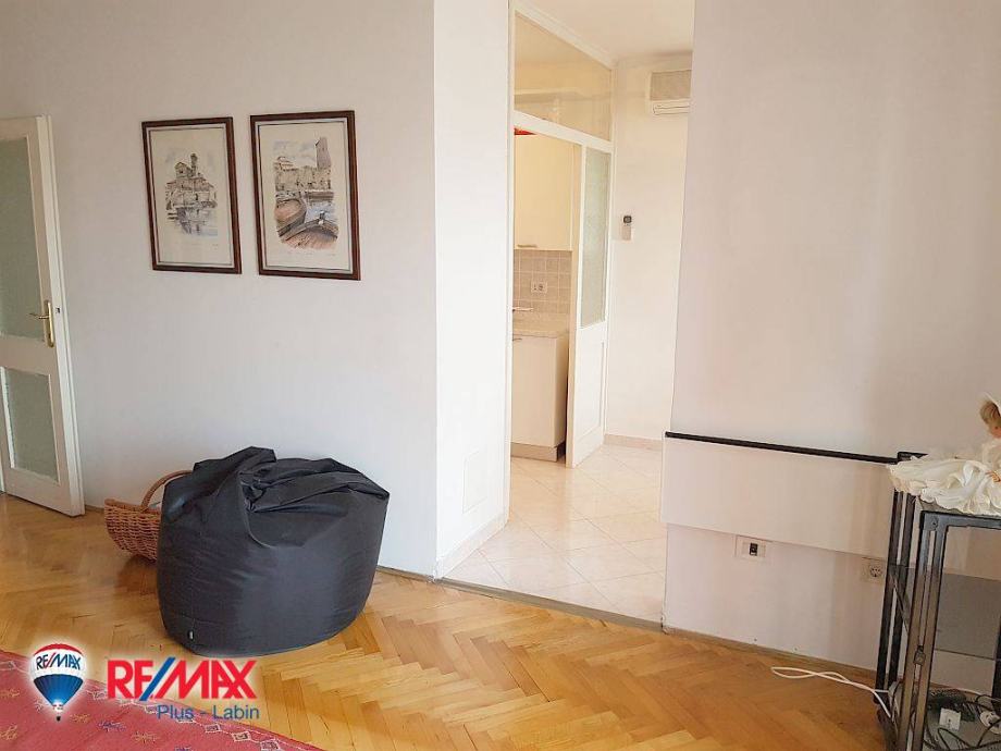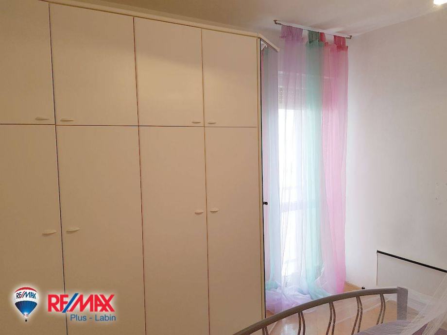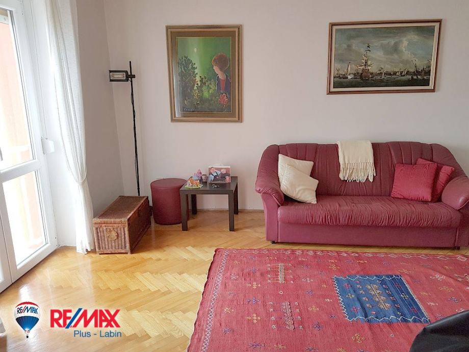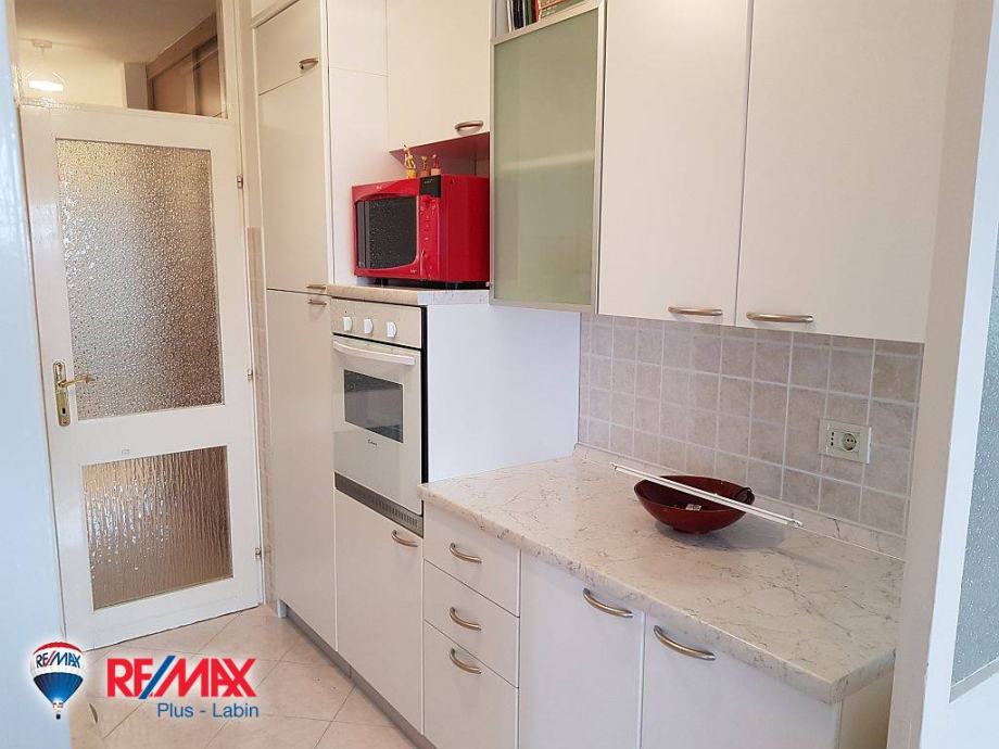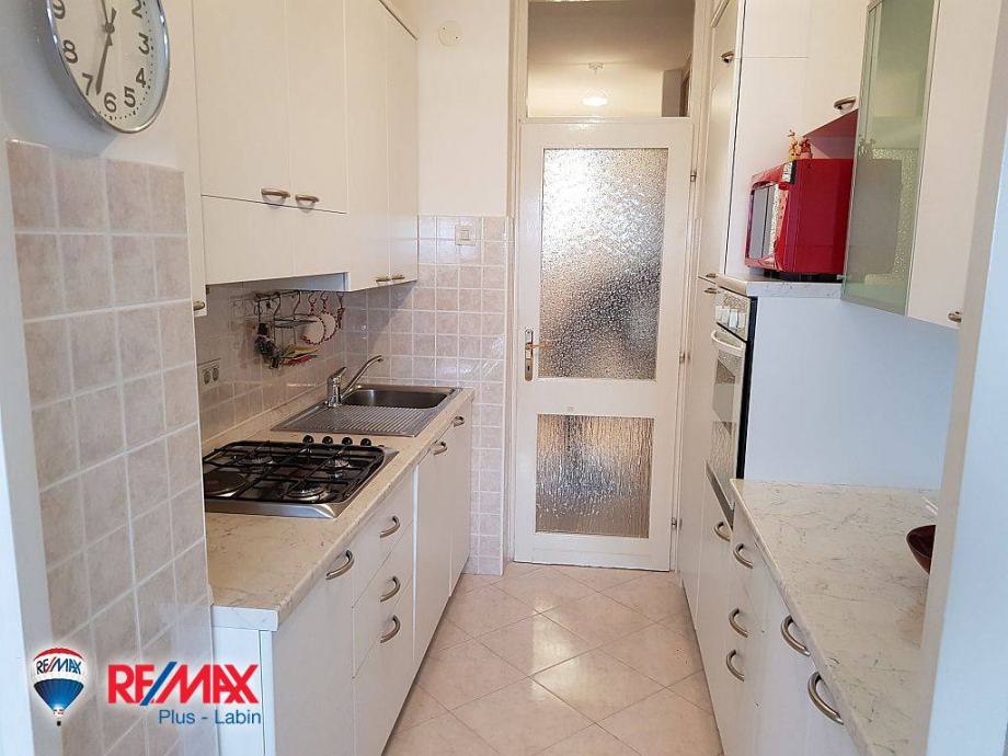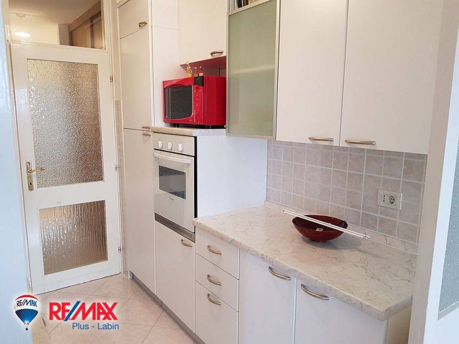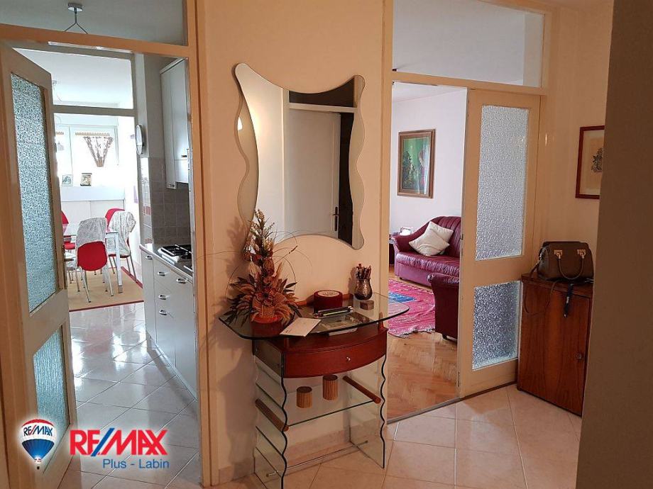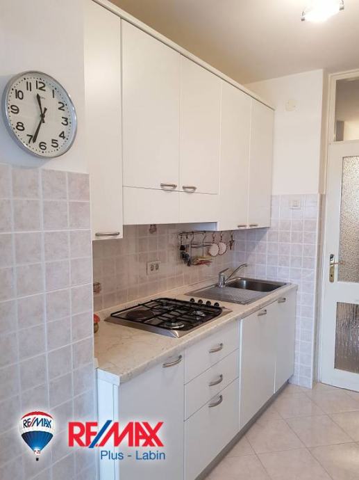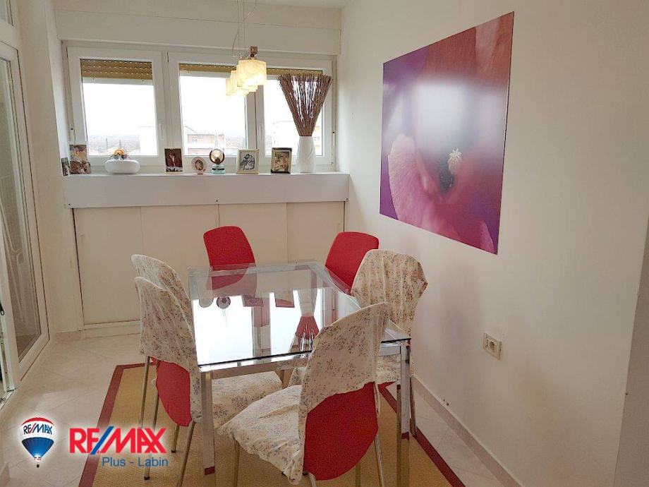 Stan u Labinu, smješten na 5-om katu stambene zgrade sa obnovljenom fasadom i toplinskom izolacijom.Stan je namješten, uredan, održavan.