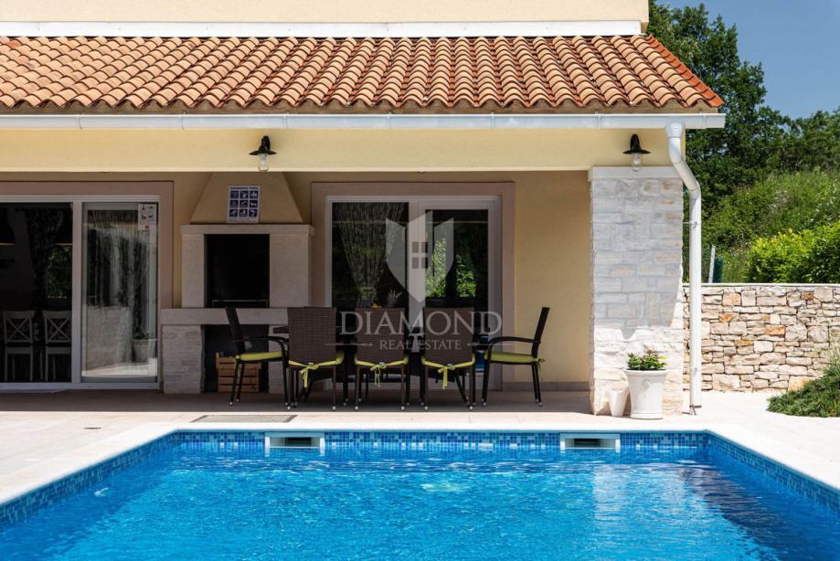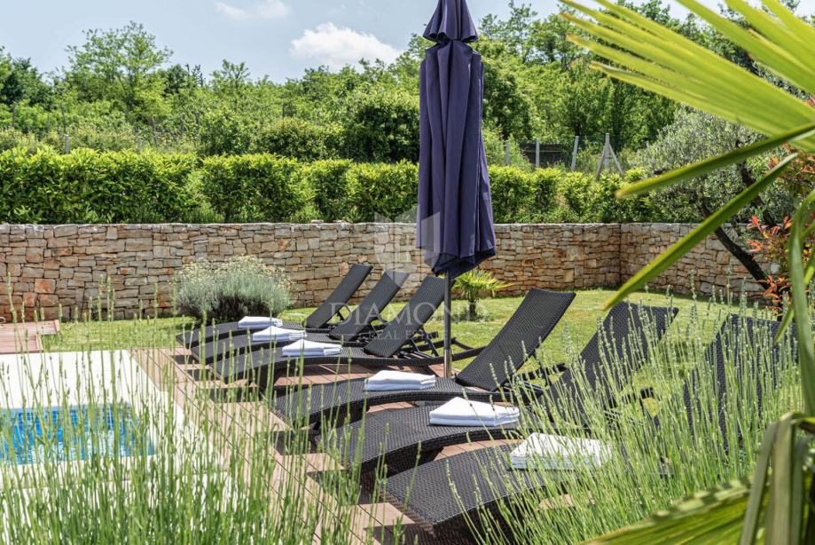 Na privatnoj okućnici ukupne površine 1020 m2 smjestio se prostrani grijani bazen ukupne površine 32 m2. Okućnicu također krasi roštilj i natkriveni dio terase gdje se nalazi blagovaonski stol za ugodna druženja u toplim ljetnim mjesecima. Uz prekrasni grijani bazen i uređeno sunčalište nalazi se i lounge prostor sa lijepim pogledom na uređenu okućnicu i okolnu prirodu.
