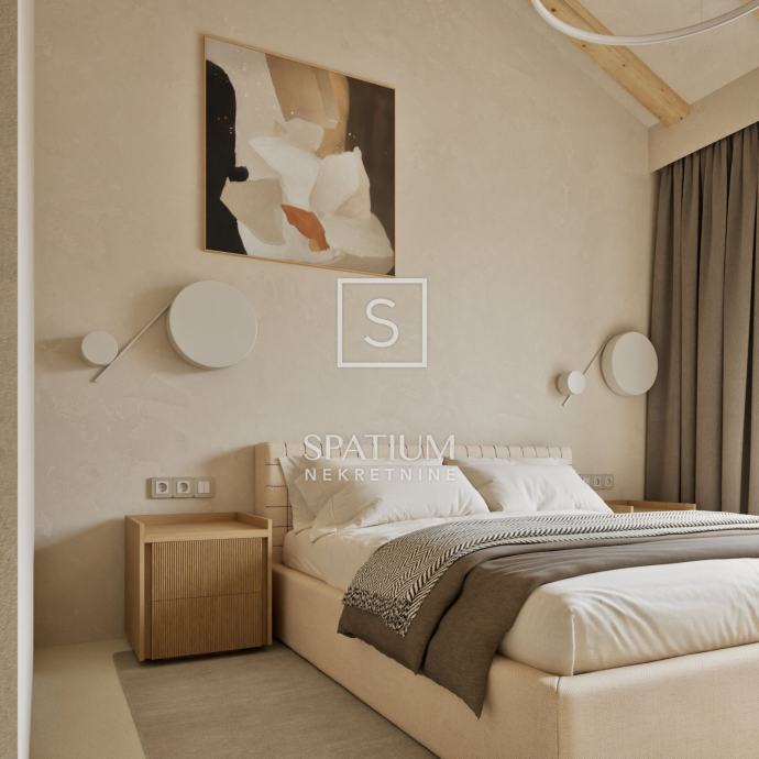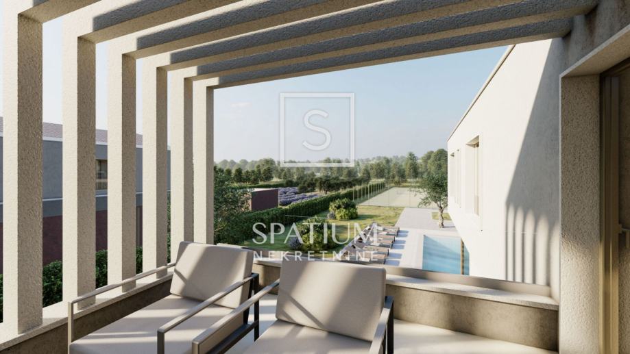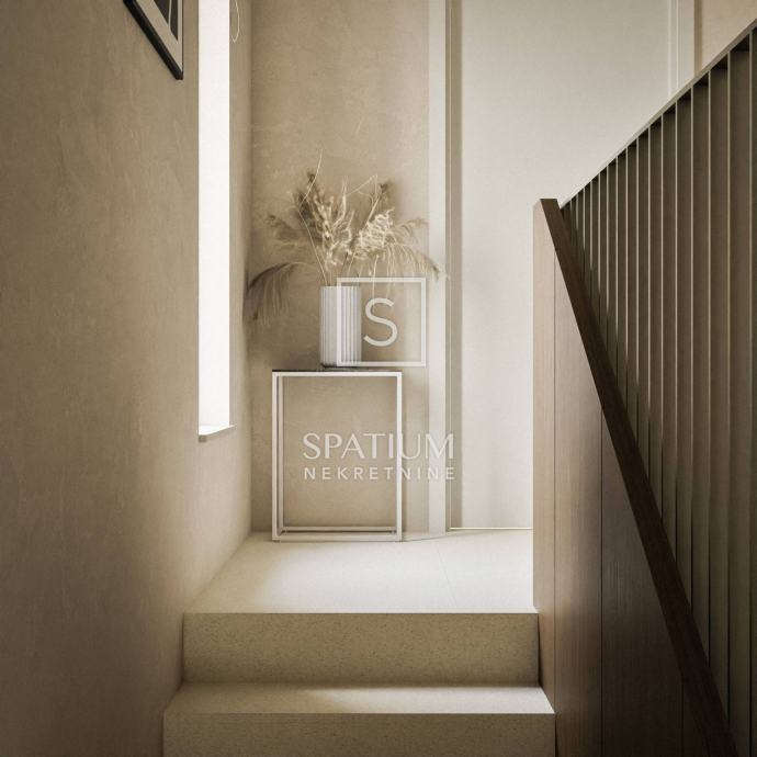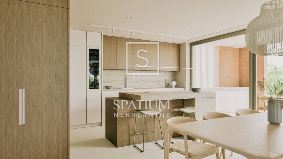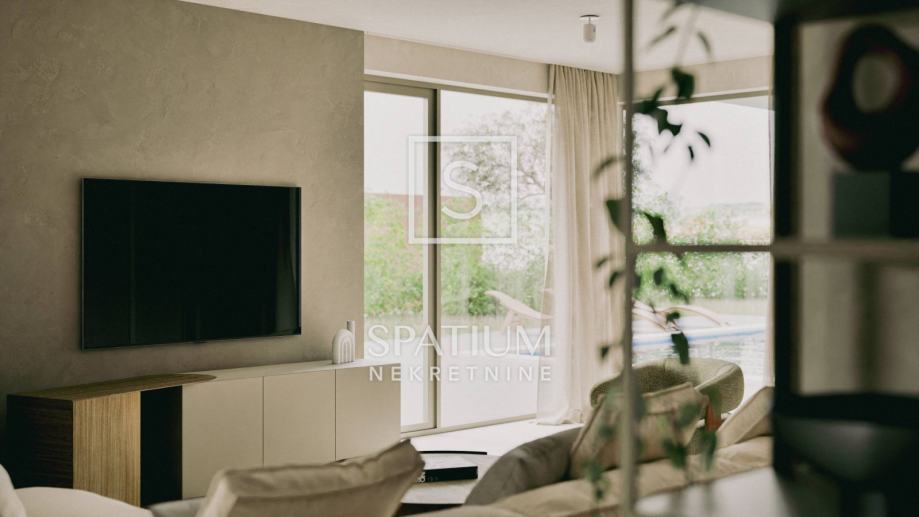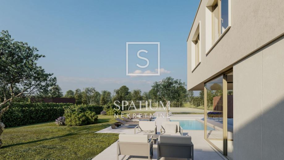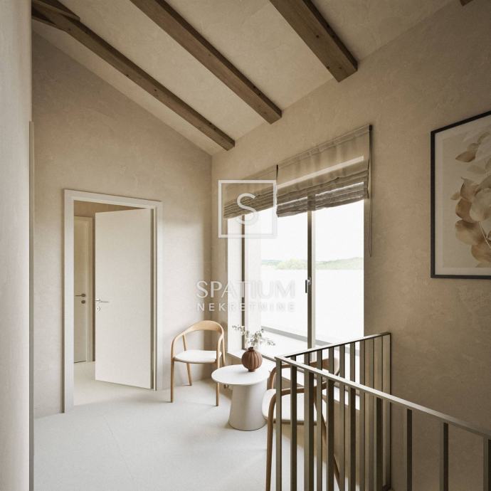 LABIN, u ponudu smo dobili vrhunsku novogradnju u mirnoj okolici Labina. Nekretnina se nalazi na zemljištu od 2647m2 od kojih će 1488m2 biti zelena površina. Kuća se sastoji od prizemlja i kata s ukupno 197m2 interijera. U prizemlju se nalazi veliki "open space" koncept dnevnog boravka, kuhinje i blagovaonice (66m2) iz kojeg se izlazi na čak dvije natkrivene terase od kojih jedna ima bazen od 47m2 sa sunčalištem te dodatnom objektom u kojem se smjestila sauna, gym i dodatno spremište. Na okućnici uređenoj i ukrašenoj mediteranskim biljem nalaze se i tri natkrivena parkirna mjesta. Unutarnjim stepeništem dolazi se na kat gdje se nalaze četiri spavaće sobe svaka od njih sa vlastitom kupaonicom. Prilikom gradnje, svi ugrađeni materijali kao i oprema (podno grijanje, klimatizacija, stolarija) su vrhunske kvalitete. Nekretnina se prodaje po sistemu ključ u ruke kompletno namještena. Završetak gradnje je očekivan početkom 2026. godine.