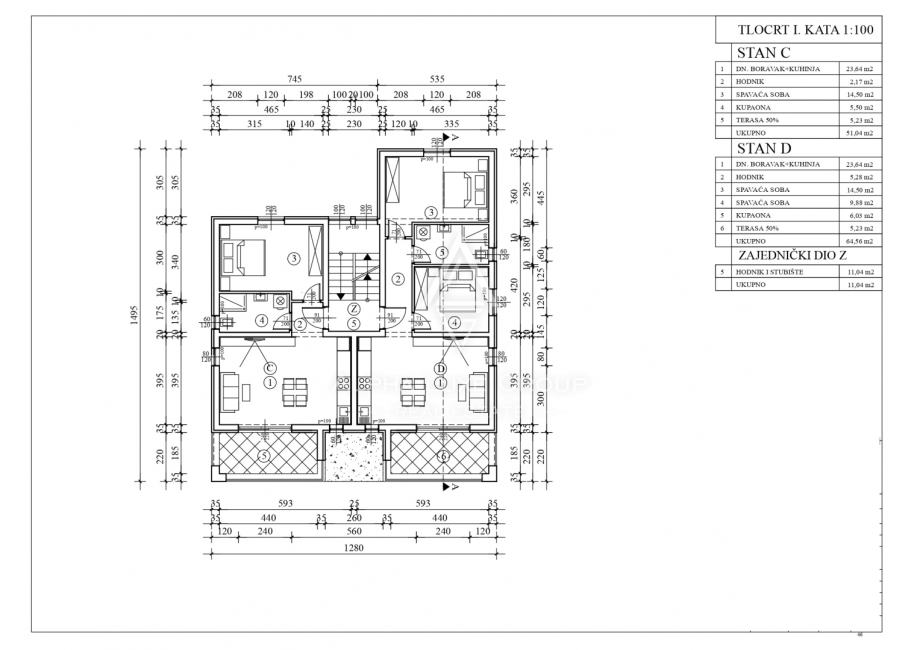 Ovi novoizgrađeni stanovi nude spoj modernog stila i visokokvalitetne završne obrade. Keramičke pločice postavljene su u svim dnevnim prostorijama, po cijeni do 25 €/m², dok su u spavaćim sobama laminatni podovi iste vrijednosti. Kuhinje i kupaonice elegantno su uređene keramičkim pločicama.