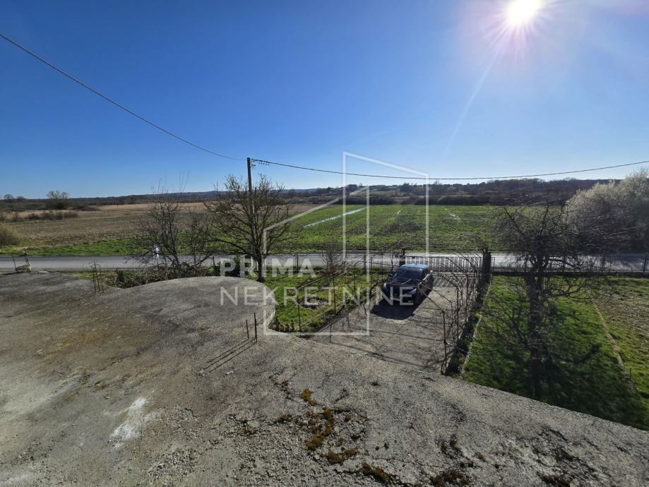 Uz kuću se prodaje i poljoprivredno zemljište odijeljeno putom od 1385 m2 sa gospodarskim objektom 16x9 m.