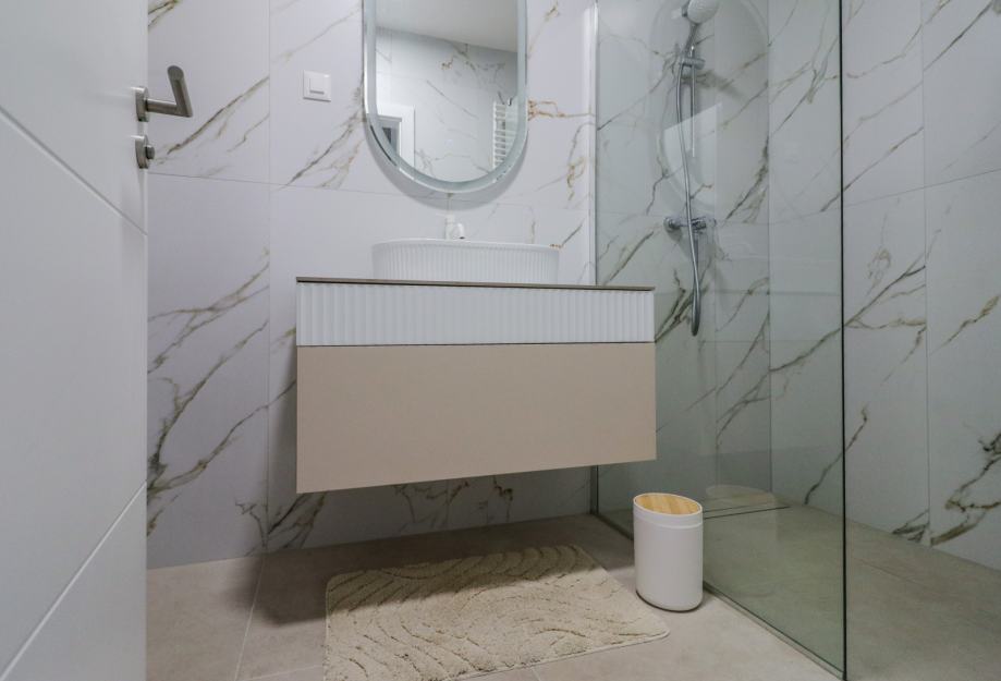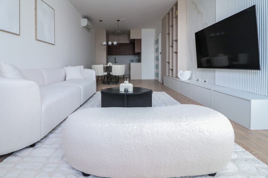 Zgrada je građena po najvišim standardima,a stan je dizajnerski uređen i opremljen vrhunskim materijalima i uređajima.