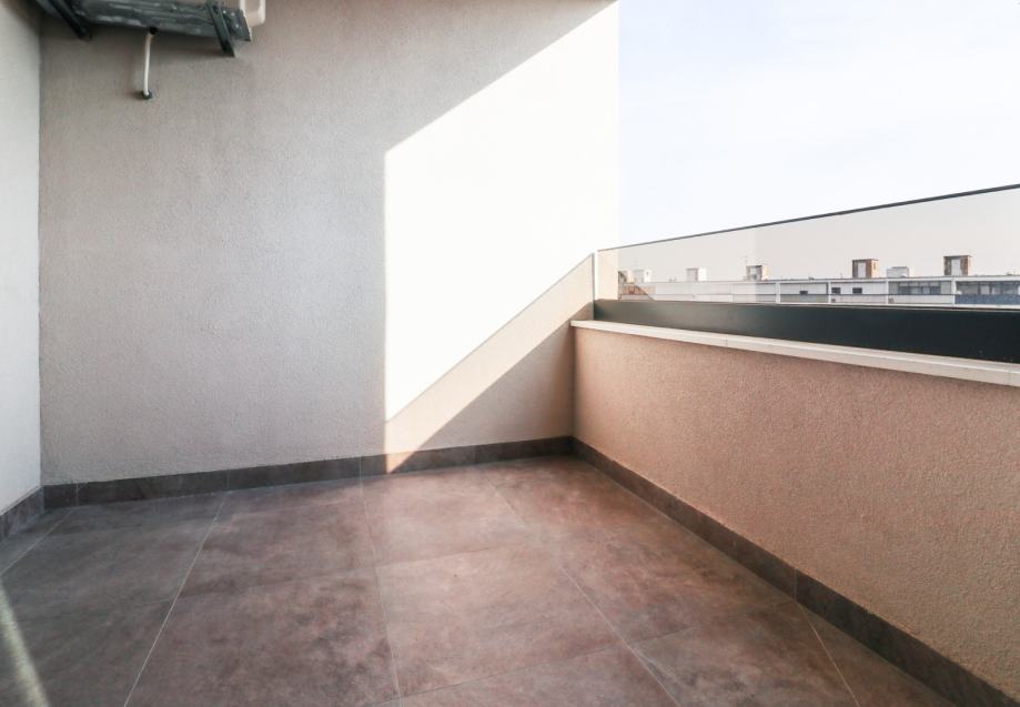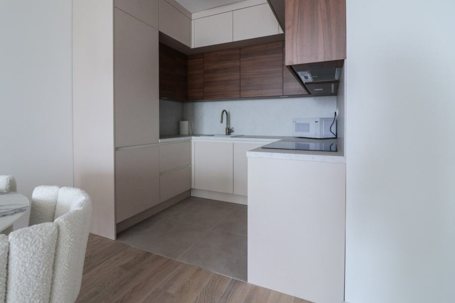 Stan je luksuzan, prekrasno uređen i odaje dojam toplog i mirnog prostora za stanovanje. Nalazi na 6. katu, orijentacije jugoistok, a sastoji se od ulaznog dijela, kupaonice, spavaće sobe, lođe te dnevnog boravka koji je povezan s kuhinjom i blagovaonskim dijelom.