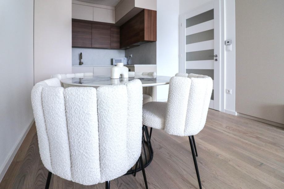 Zgrada je građena po najvišim standardima,a stan je dizajnerski uređen i opremljen vrhunskim materijalima i uređajima.