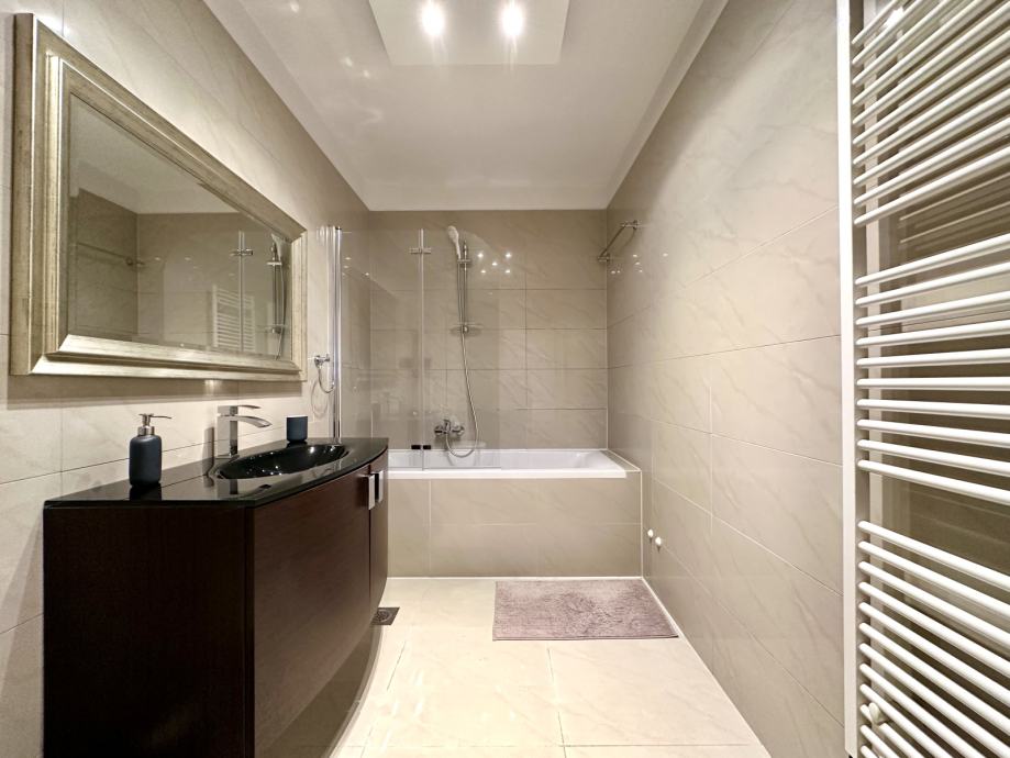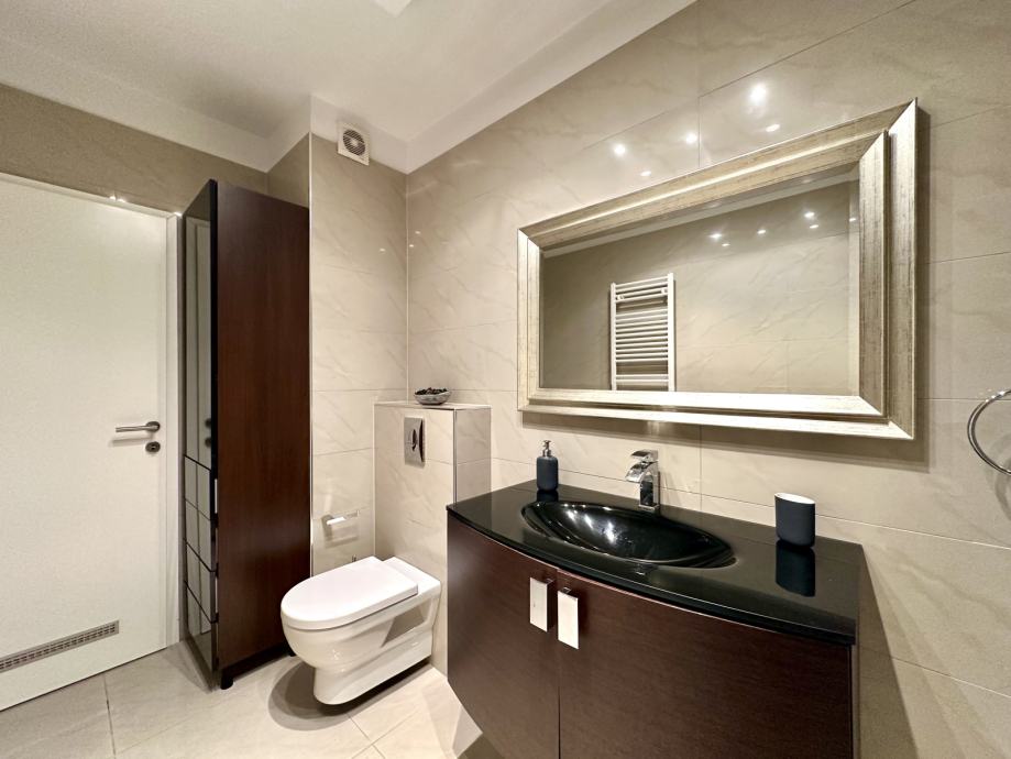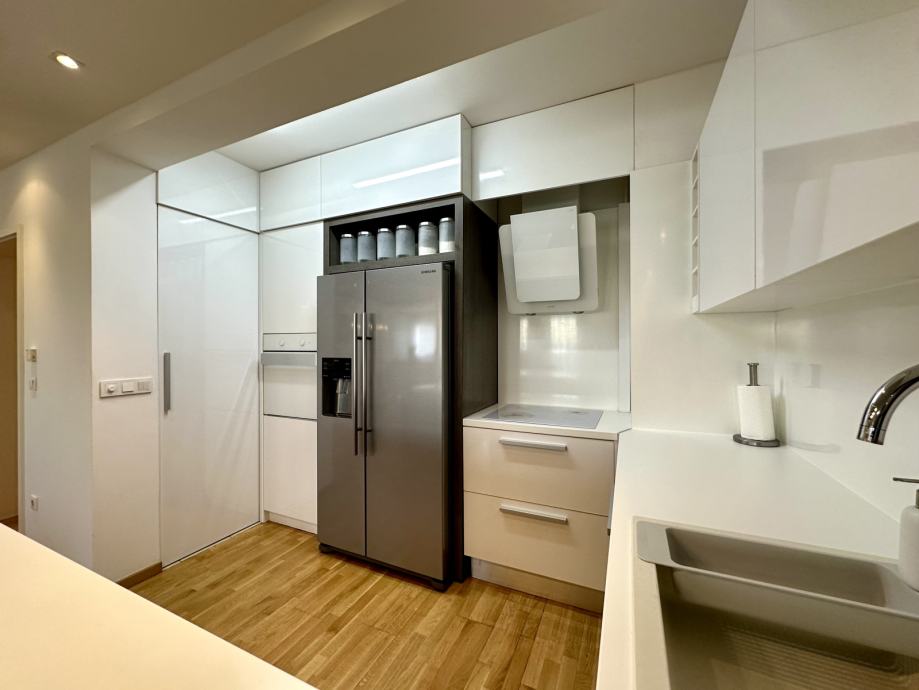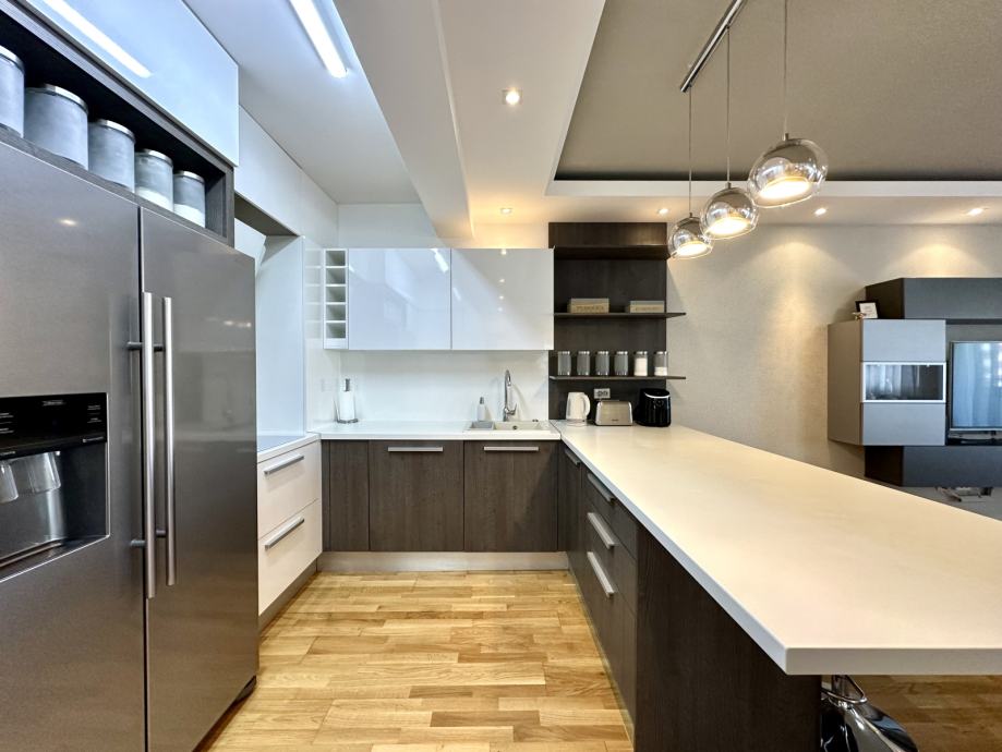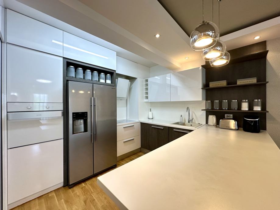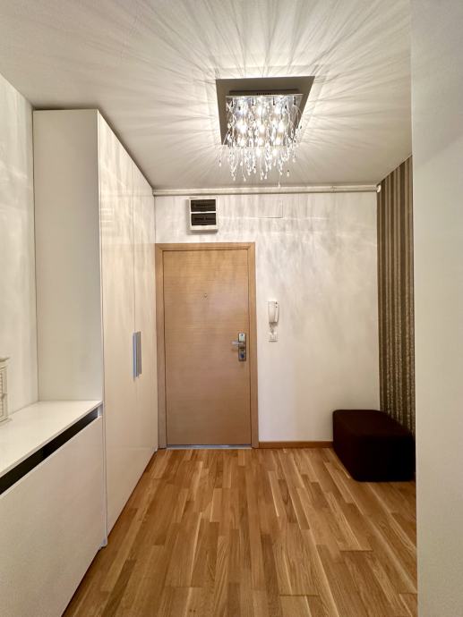 The apartment is air-conditioned, PVC joinery, suspended ceiling with LED lighting, all furniture is custom-made, equipped with top-of-the-line appliances.