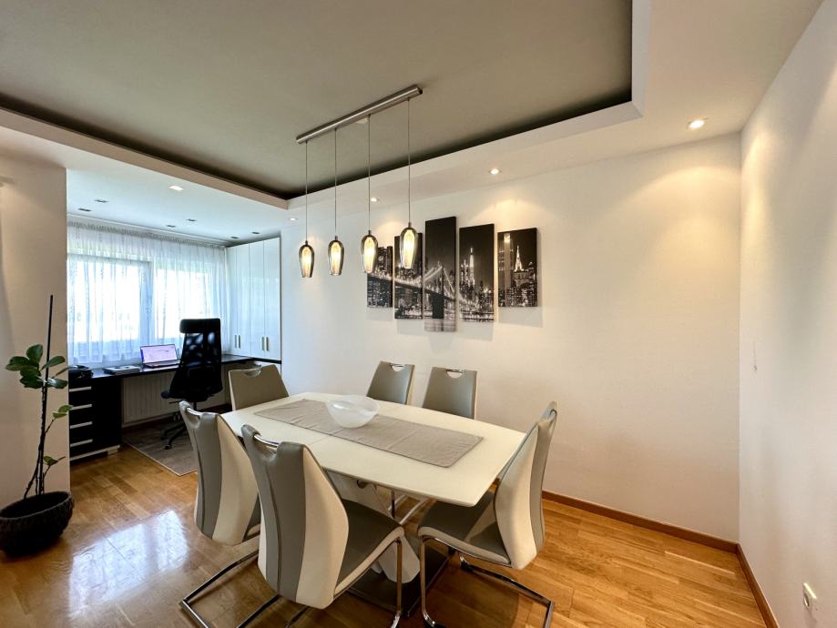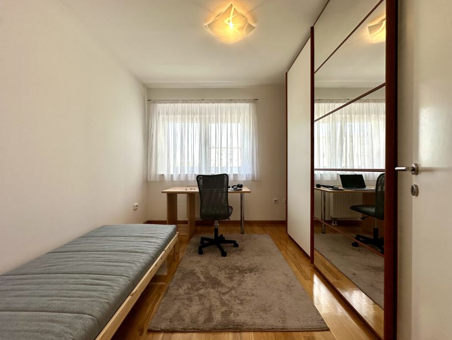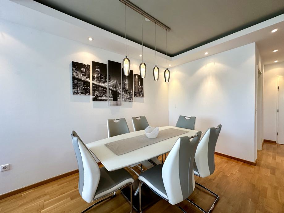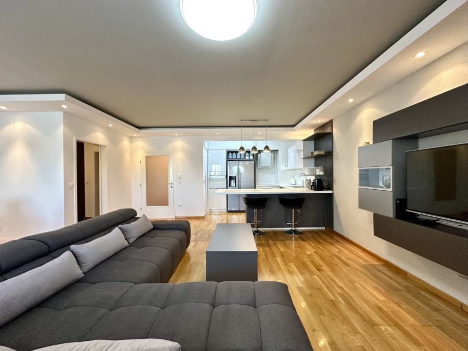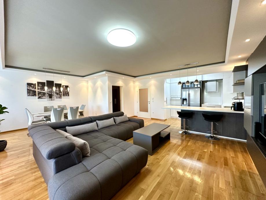 Stan je klimatiziran, PVC stolarija, spušten strop s LED rasvjetom, sav namještaj rađen po mjeri, opremljen vrhunskim kućnim aparatima.
