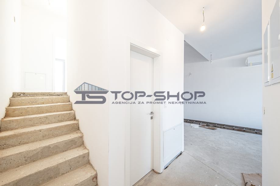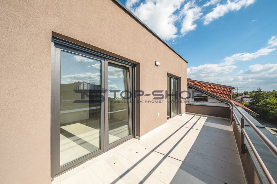 Prostor je funkcionalno organiziran na dvije etaže te uključuje tri spavaće sobe, dnevni boravak spojen s kuhinjom i blagovaonicom sa krovnim prozorima, dvije kupaonice s WC-om,stubište, hodnik, terasu, balkon, garažno mjesto i vanjsko parkirno mjesto. Orijentacija stana prema jugu i istoku osigurava obilje prirodnog svjetla tijekom cijelog dana te pruža lijep pogled na uređenu okućnicu.