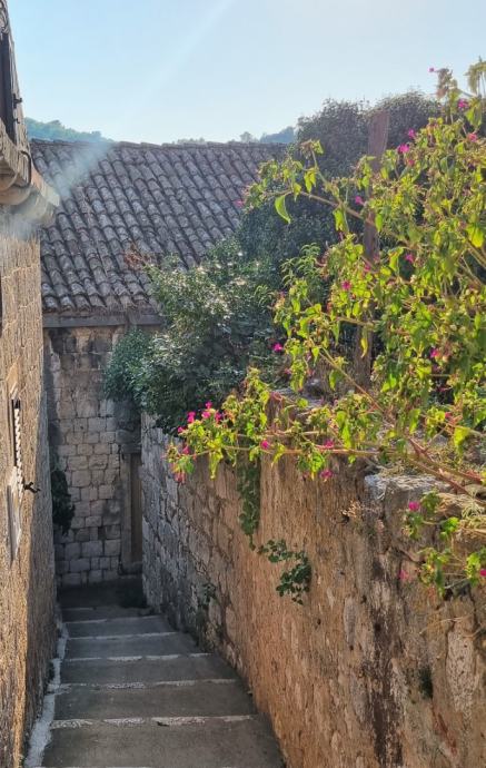 Kamena kuća na tri etaže u centru mjesta Lastovo, ukupne površine cca 108 m2, dio stare zaštićene palače, prizemlje velike visine s karakterističnim polukružnim svodom, potrebna kompletna rekonstrukcija, prilaz s dvije strane - gornje i donje ulice, pogled na mjesto, mogućnost kupnje i manje kućice s vrtom u neposrednoj blizini.