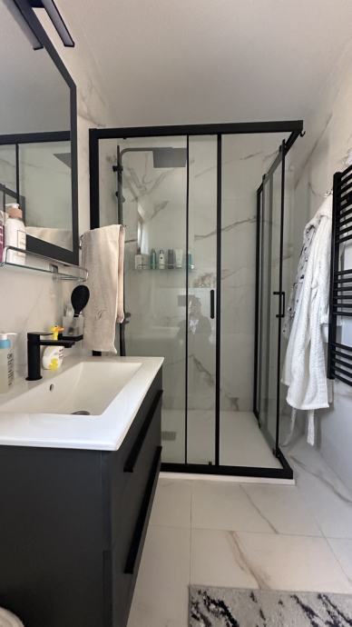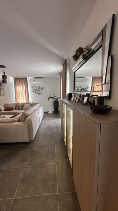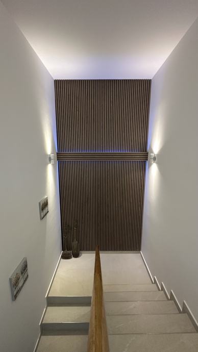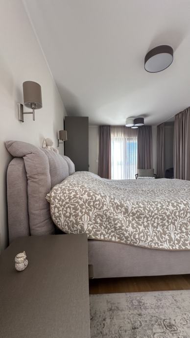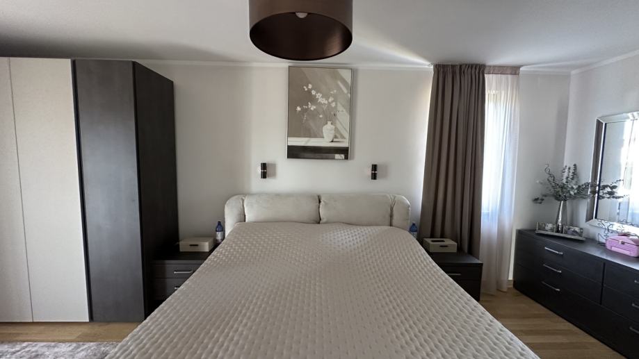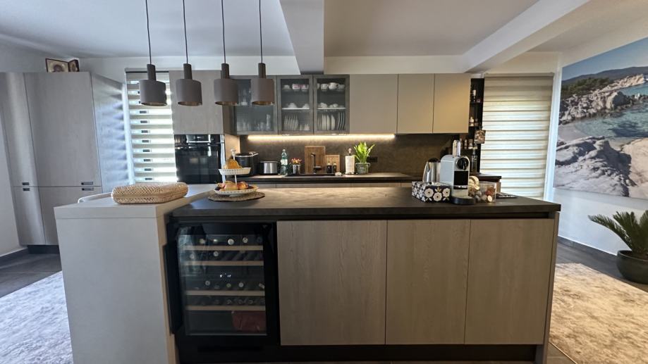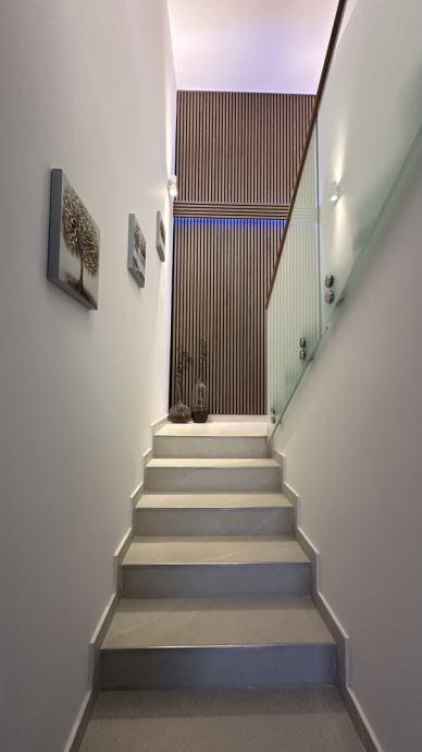 Ova rustikalna vila sastoji se od prizemlja i kata. U prizemlju će biti prostrani dnevni boravak, sa kuhinjom i blagovaonom, ukupne površine čak 64,47 m2, spavaća soba površine 13,94 m2, kupaonica i WC, kao i spremište te izba. Stubište vodi do hodnika prvoga kata, gdje će se nalaziti još dvije spavače sobe, od kojih svaka ima i vlastitu kupaonu po projektu, te je svaka soba površine 23,39 m2, a svaka kupaona čak 6,12 m. Sobe imaju izlaz na terasu, koja je komforna i njezina površina je 35,41 m2. Ukupna površina vile iznosi 203,71 m2, a tu je još i terasa u prizemlju, površine 40 m2 te ulazni natkriveni prostor, površine 2,80 m2. Okućnica ove vile je komfornih 520 m2. Kvalitetna gradnja po visokim standardima pruža sigurnost da će ova nekretnina biti vrlo luksuzna i vrijedna.