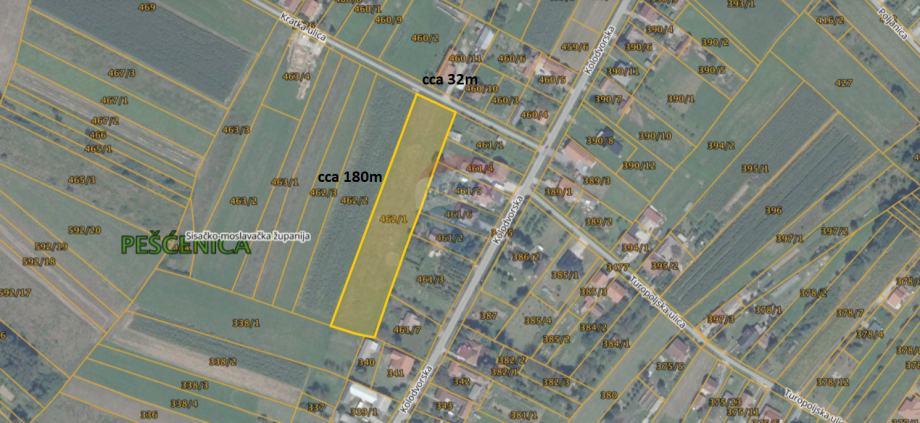 U malom mjestu, Pešćenica, uz cestu, prodaje se zemljište 5870 m2, širine cca 32m uz cestu, dužina parcele je cca 180m.