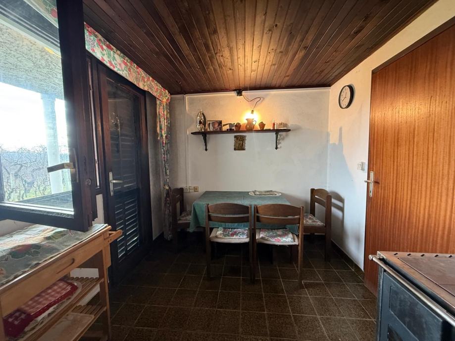 Kuća je građena 1957.god., a sastoji se od suterena (kuhinja i prostorija za druženje, spremište za alat, mala terasa i wc) i kata (dvije spavaće sobe i natkrivena terasa). Posjeduje priključak električne energije, koristi se voda kišnica i septička jama. Na okućnici je 6 redova održavanog vinograda, na betonskim stupovima i žici, oko 300 do 400 trsova mješanog bijelog i crnog grožđa. Uz kuću vlasnici poklanjaju 3 inoks bačve za vino, špricu i samohodnu kosilicu, kao i drugi alat i pribor za održavanje posjeda.