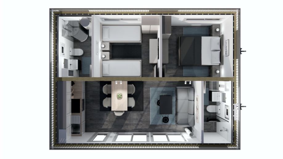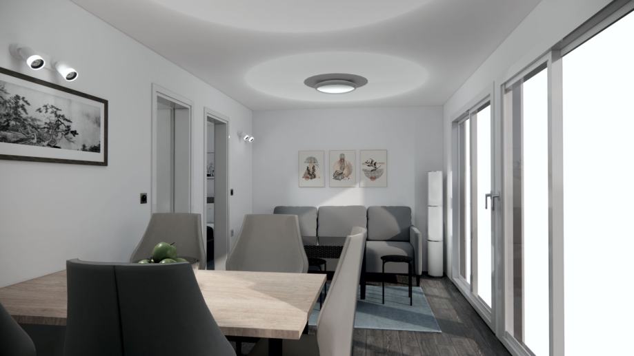 Optimalna iskoristivost prostora: Na 48 m², Leona 48 nudi pametno raspoređene prostorije uključujući dvije spavaće sobe, dvije kupaonice, dnevni boravak, kuhinju i blagovaonicu, s mogućnošću dodavanja terase.