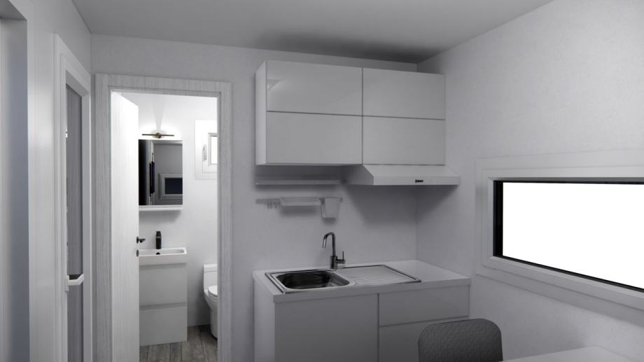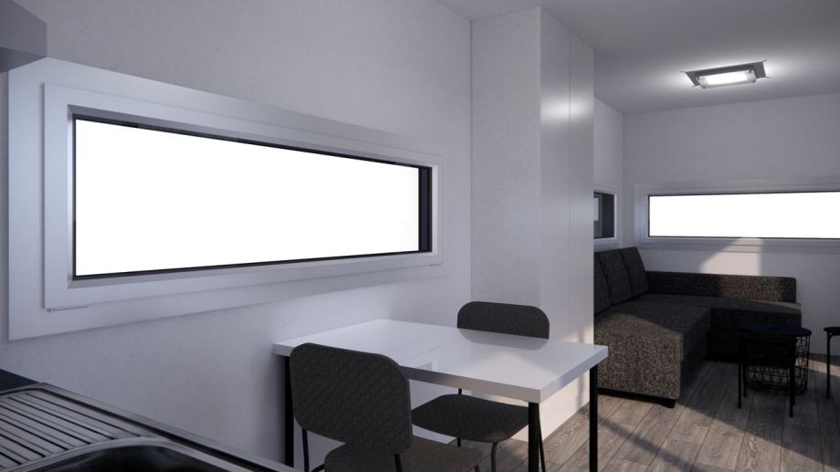 Optimalna iskoristivost prostora: Na 20 m², Leona 20 nudi pametno raspoređene prostorije uključujući kupaonicu, dnevni boravak, kuhinju i blagovaonicu, s mogućnošću dodavanja terase.