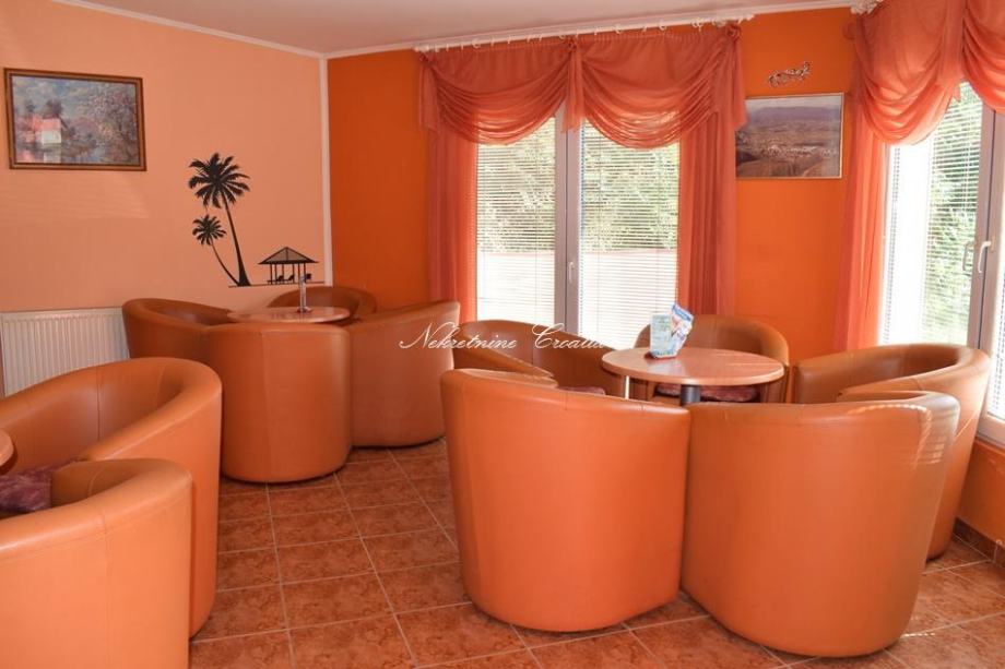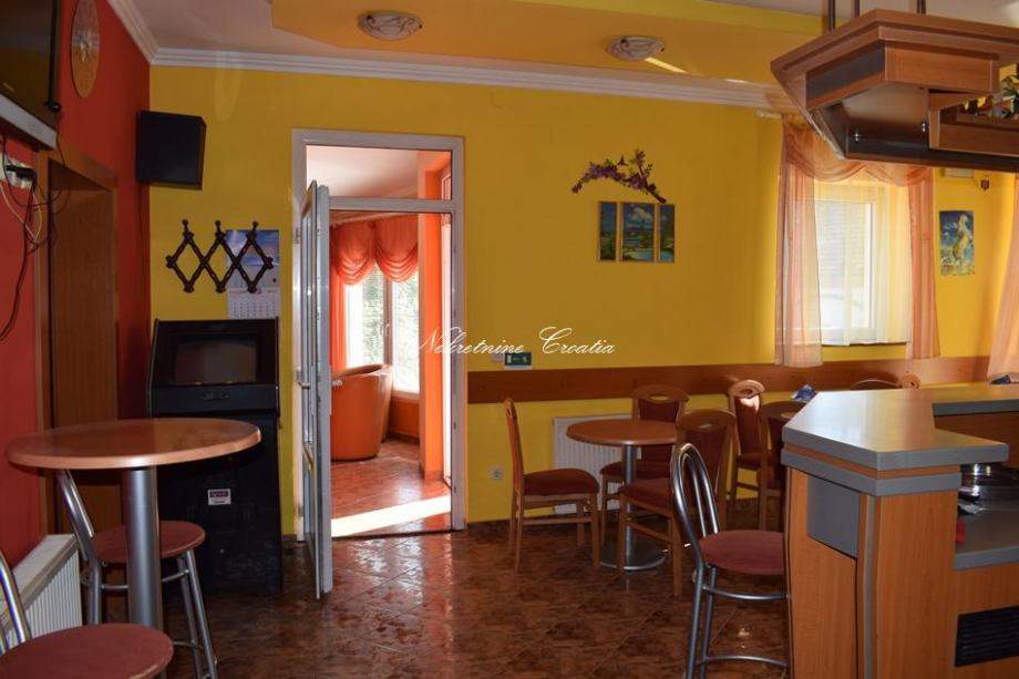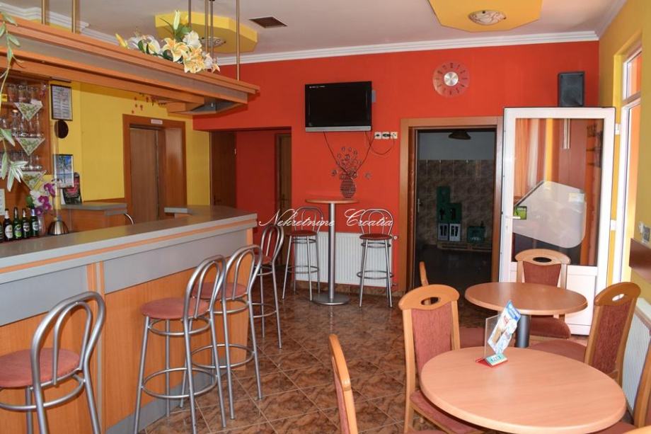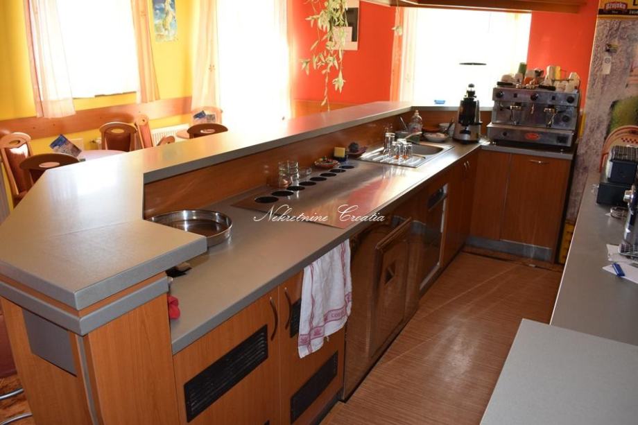PVC vanjska stolarija, plinsko centralno grijanje.- prostor sa šankom- prostor sa stolovima- skladište- sanitarni čvorovi (M+Ž+ osoblje)- vanjska terasa